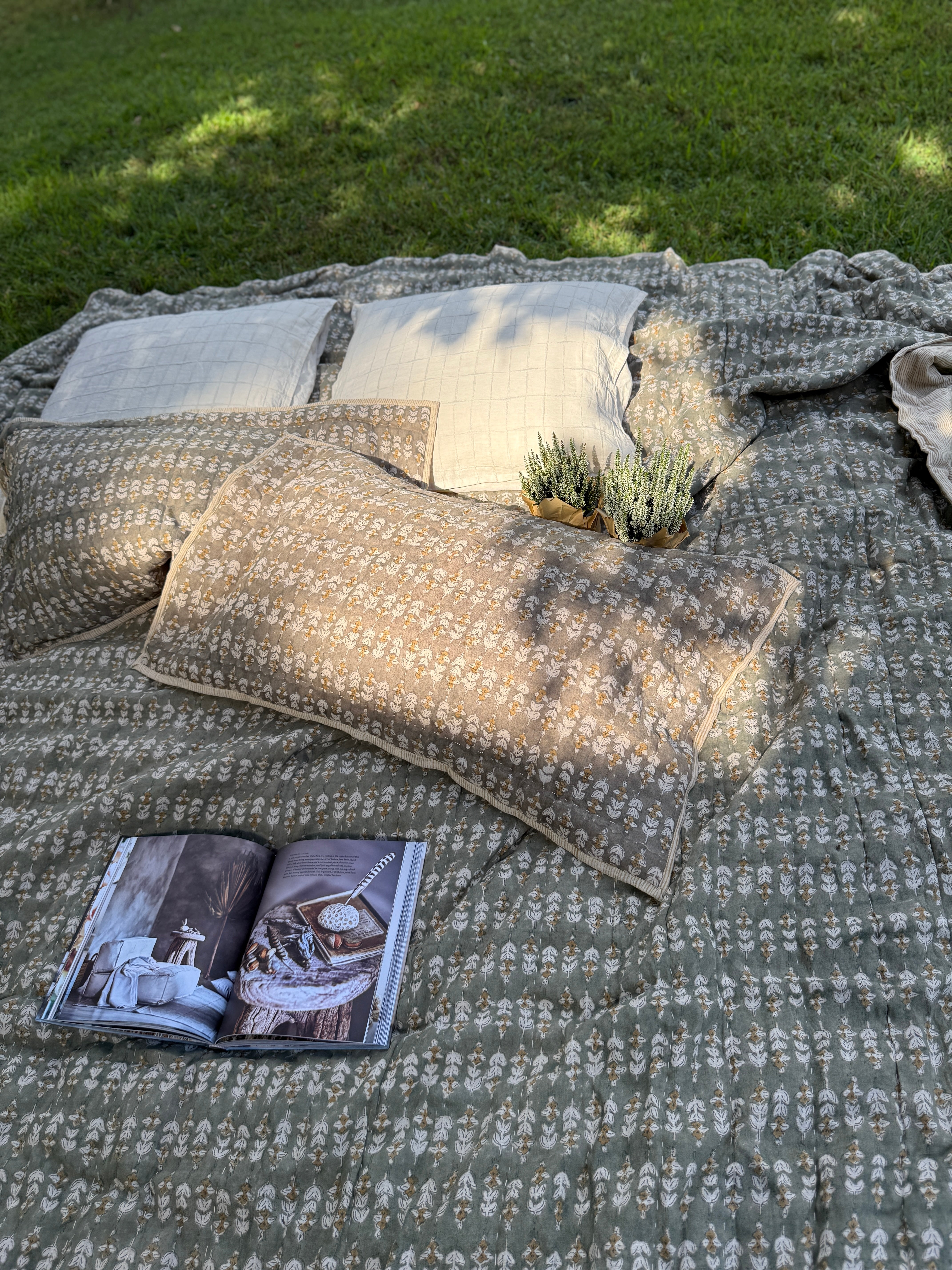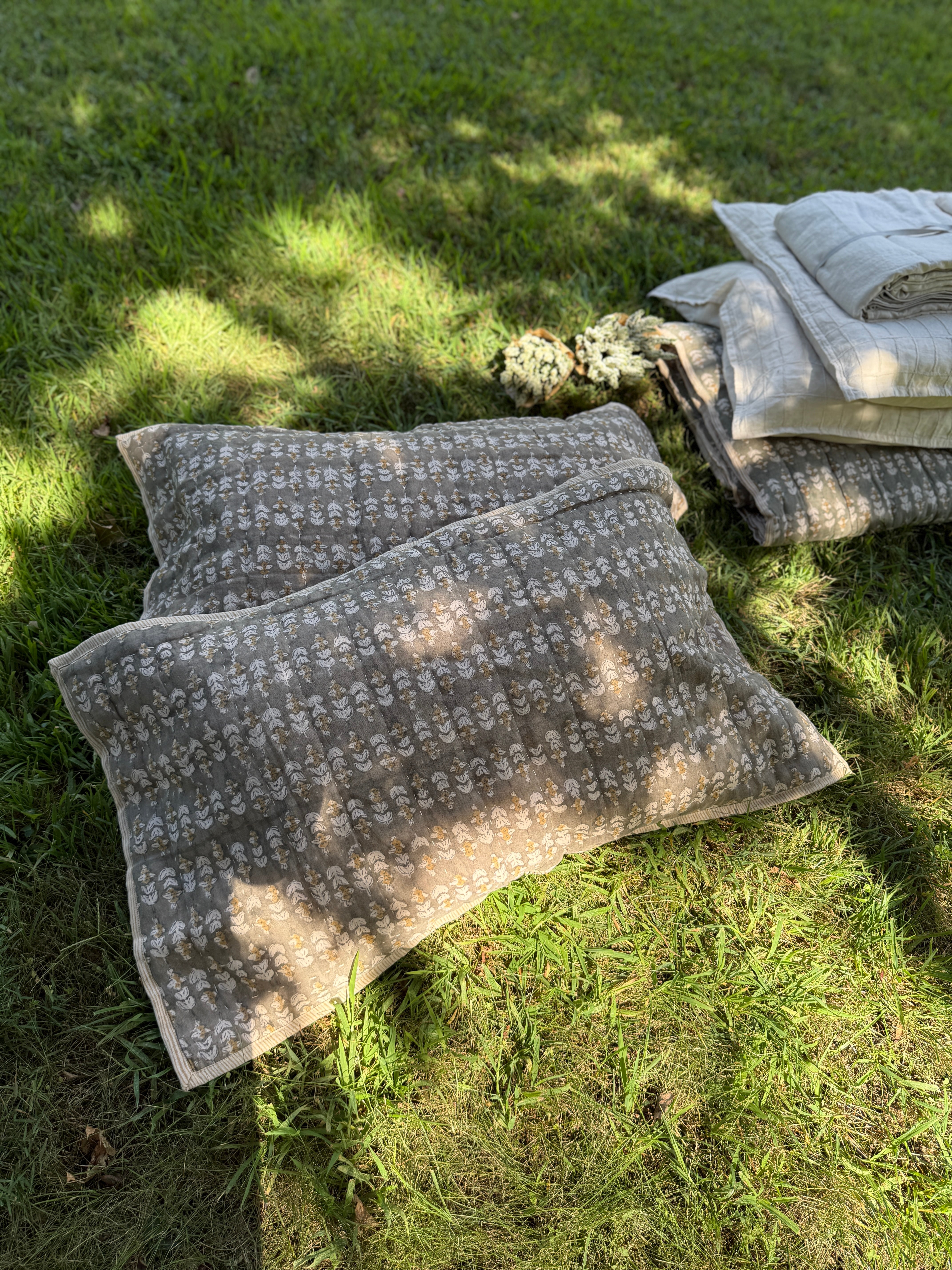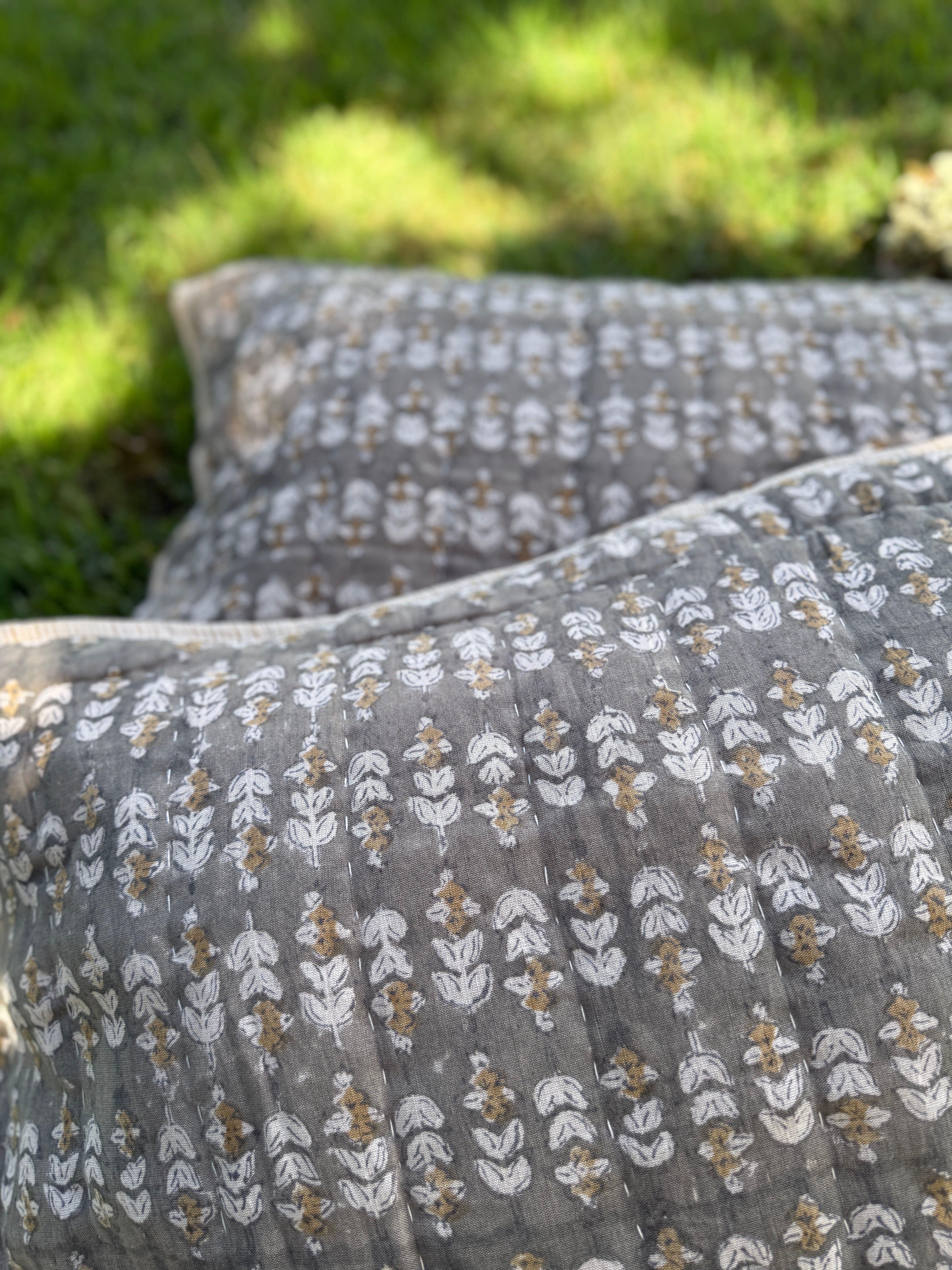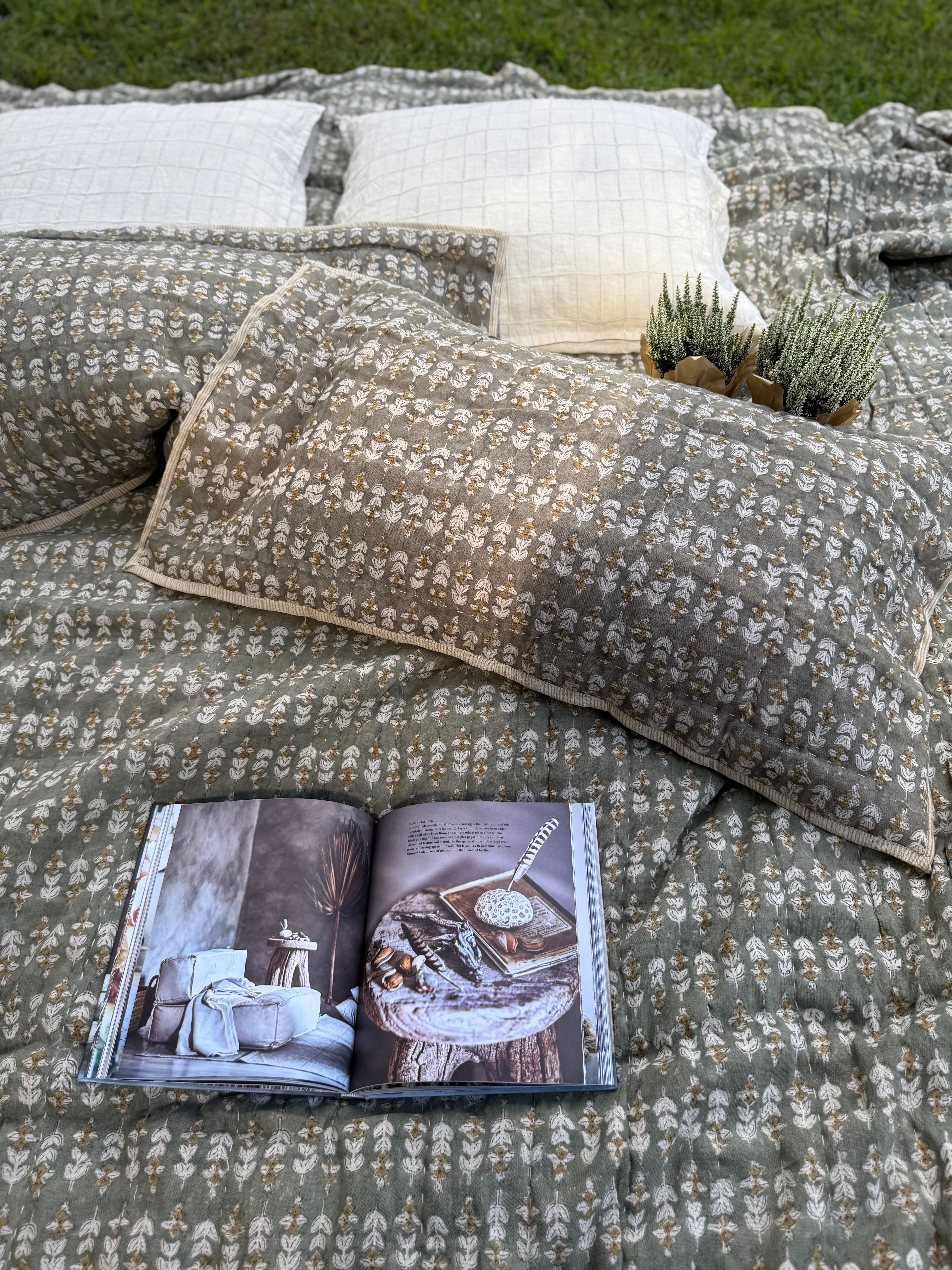 Introducing our Blossom Block Print Shams Set of 2, a celebration of elegant natural hues and timeless design. In color Olive Night, these shams feature a captivating block print pattern that adds a touch of handcrafted charm to your bedroom. Crafted by skilled artisans through a time-honored technique, our unique block print designs are carved onto wooden blocks, carefully aligned by hand, and meticulously repeated with precision. Once printed, the fabric is sun-dried. As each piece is made entirely by hand, natural variations may occur, ensuring that every textile is truly one of a kind.