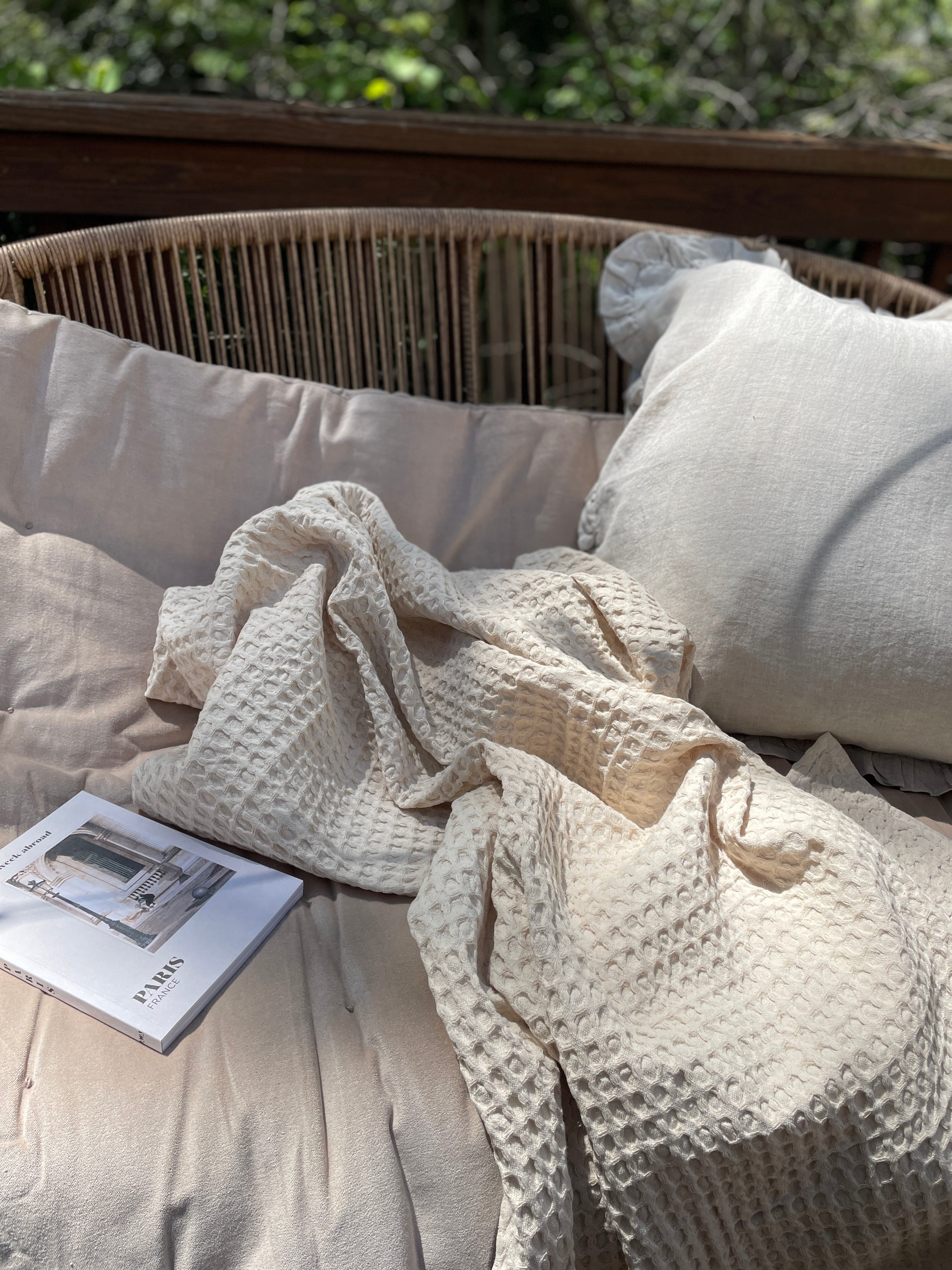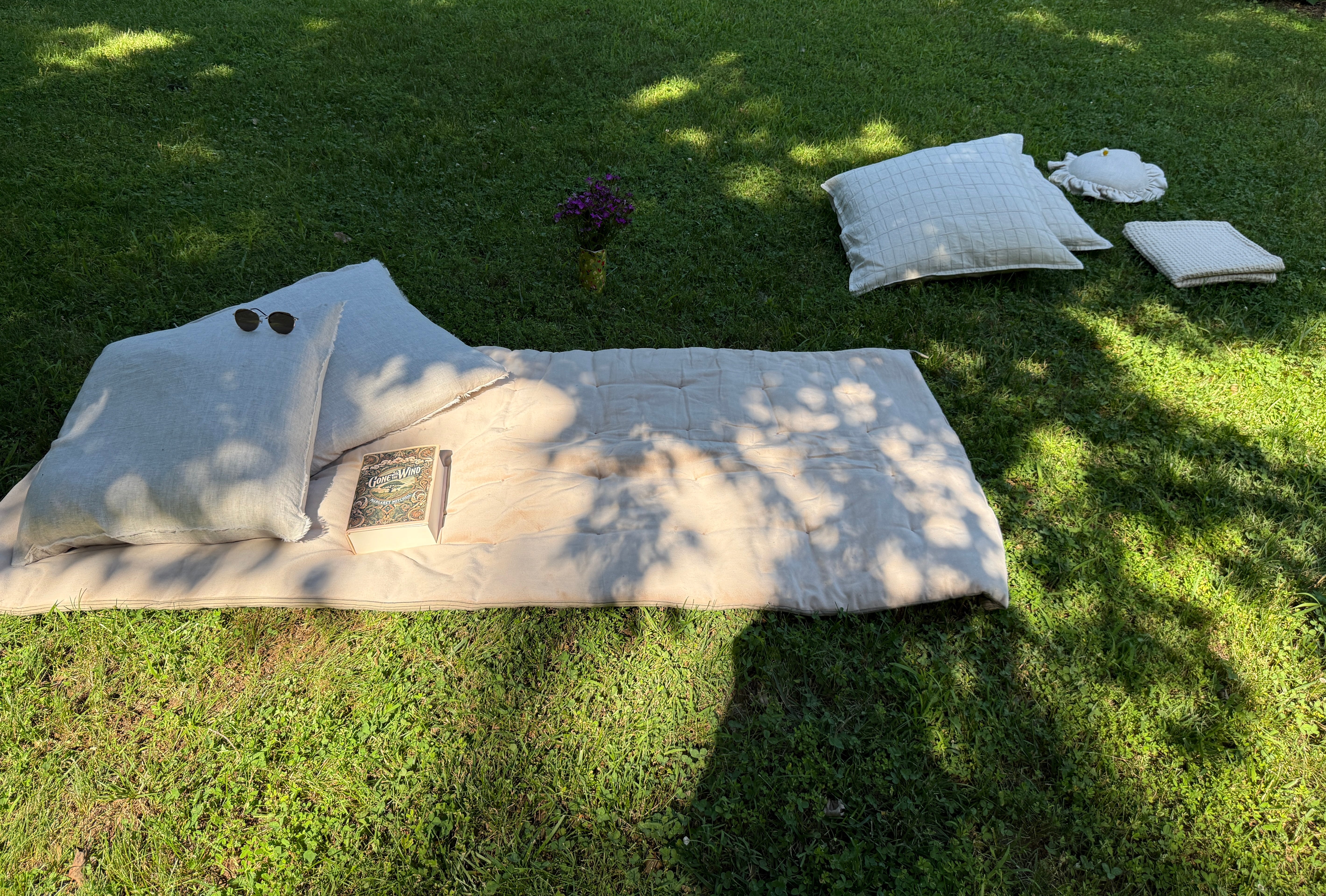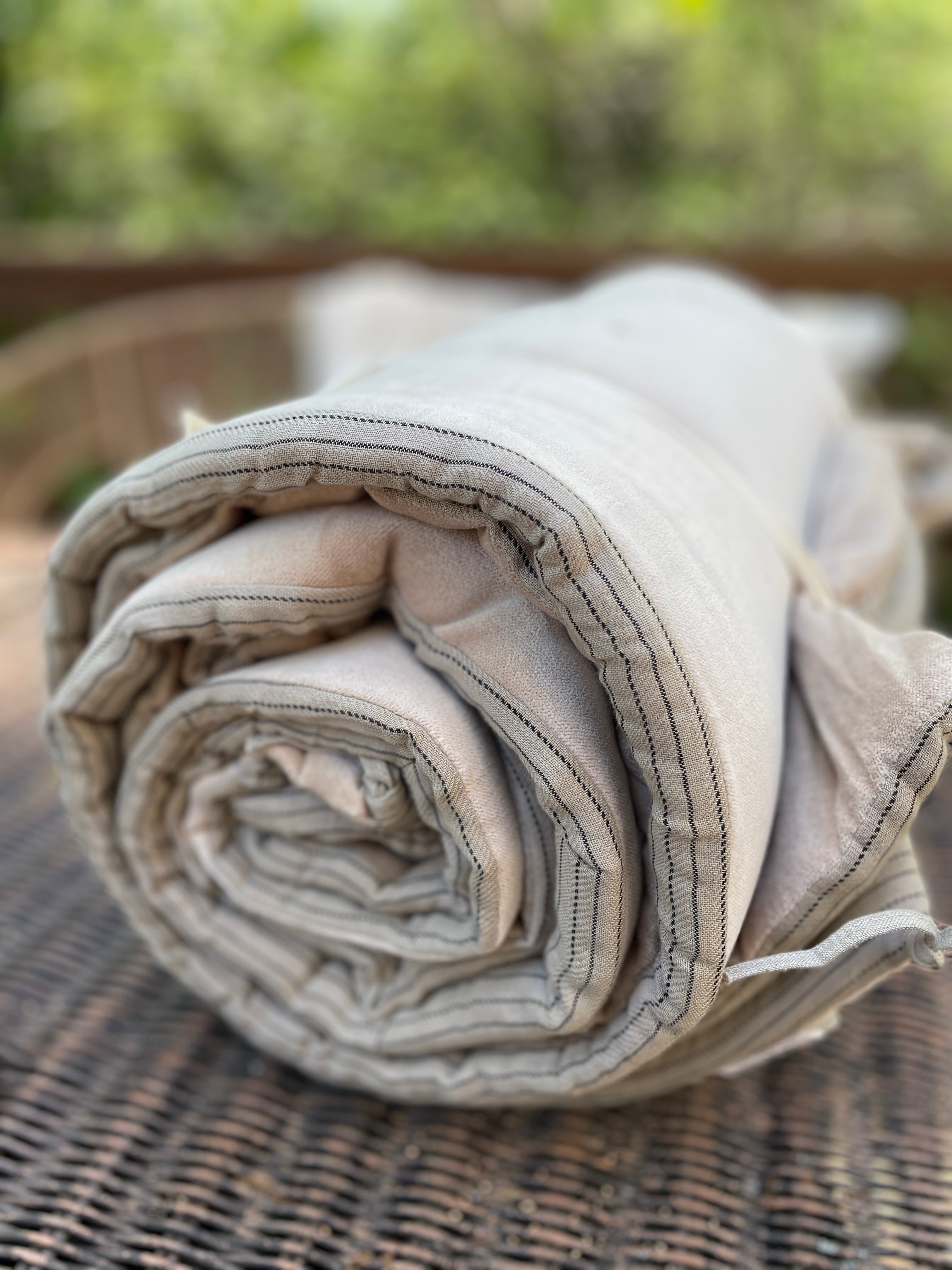 This cozy layer of cotton and linen covered French mattress can be used in so many ways to protect furniture, add more warmth and softness, make a bench more comfortable or roll it up and take it anywhere for a picnic. Lay it on top of a sofa or bed it adds an extra layer of texture and comfort. It's light, easy to clean and neutral enough to mix with almost anything.