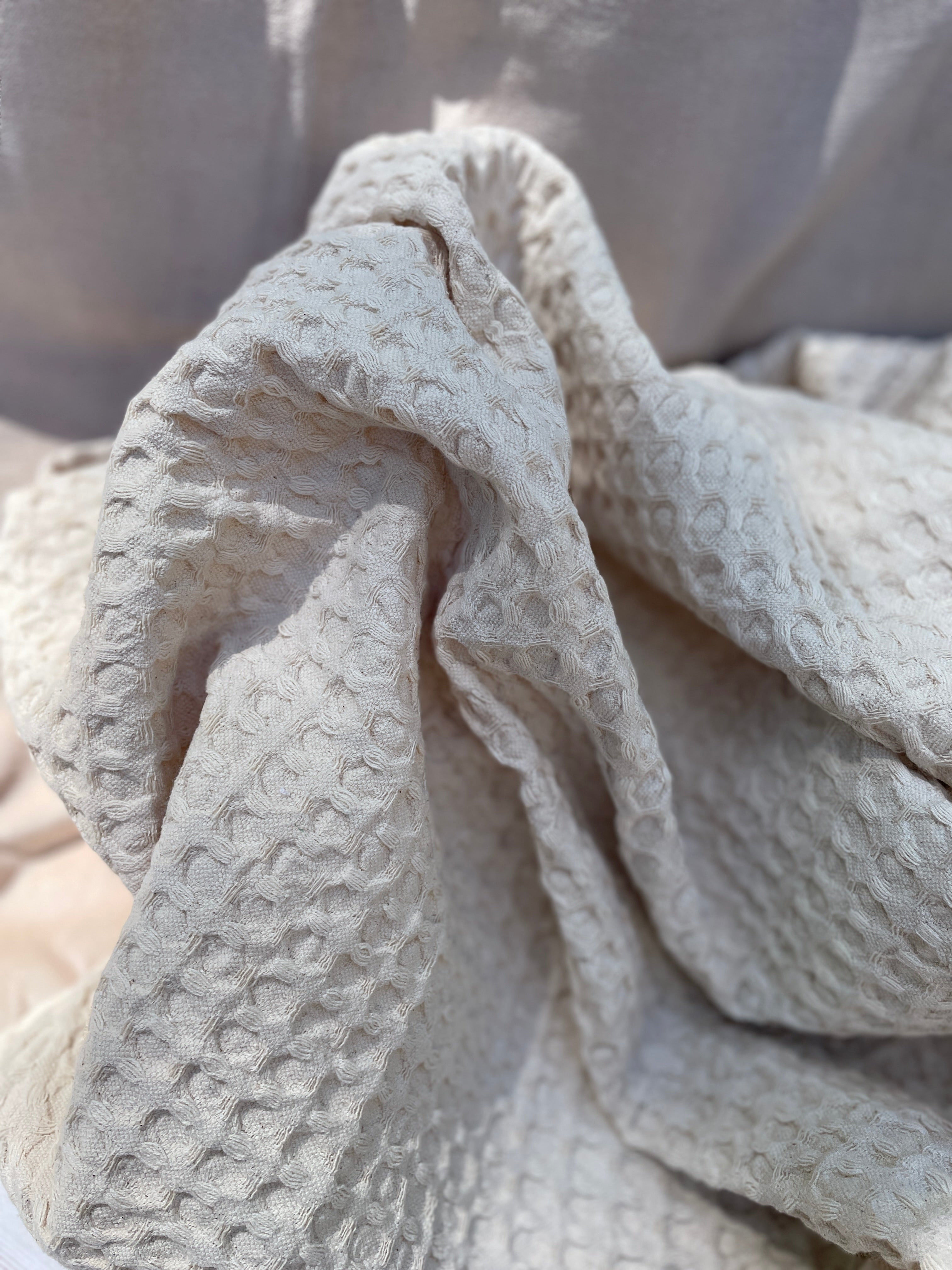 Snuggle with the softest feeling of textiles under this waffle blanket in your favorite cozy nook. It's breathable, it's beautiful, it'll add an instant touch of easy elegance and texture to whatever you drape it on but most importantly it'll FEEL absolutely gorgeous! And that color...