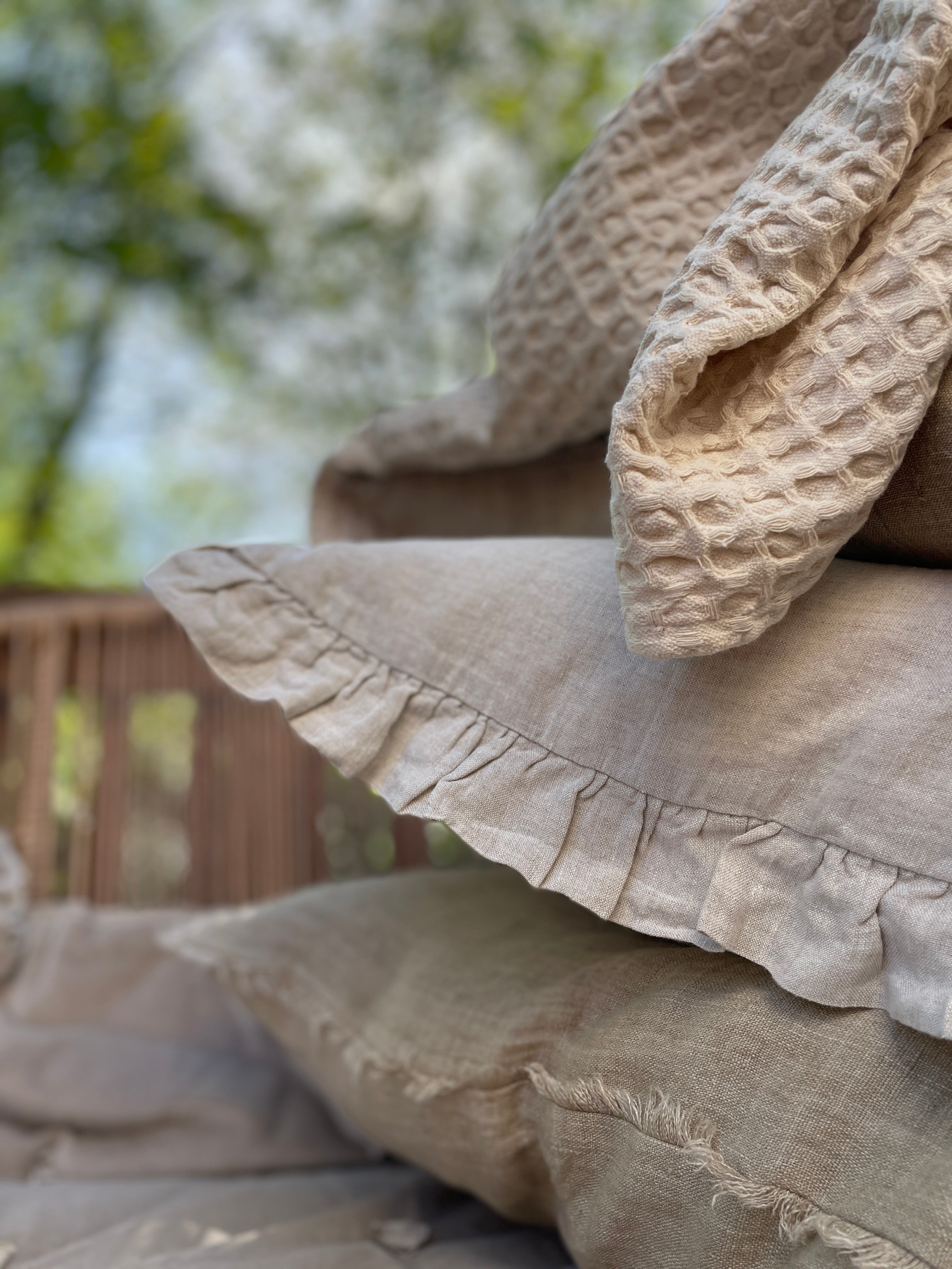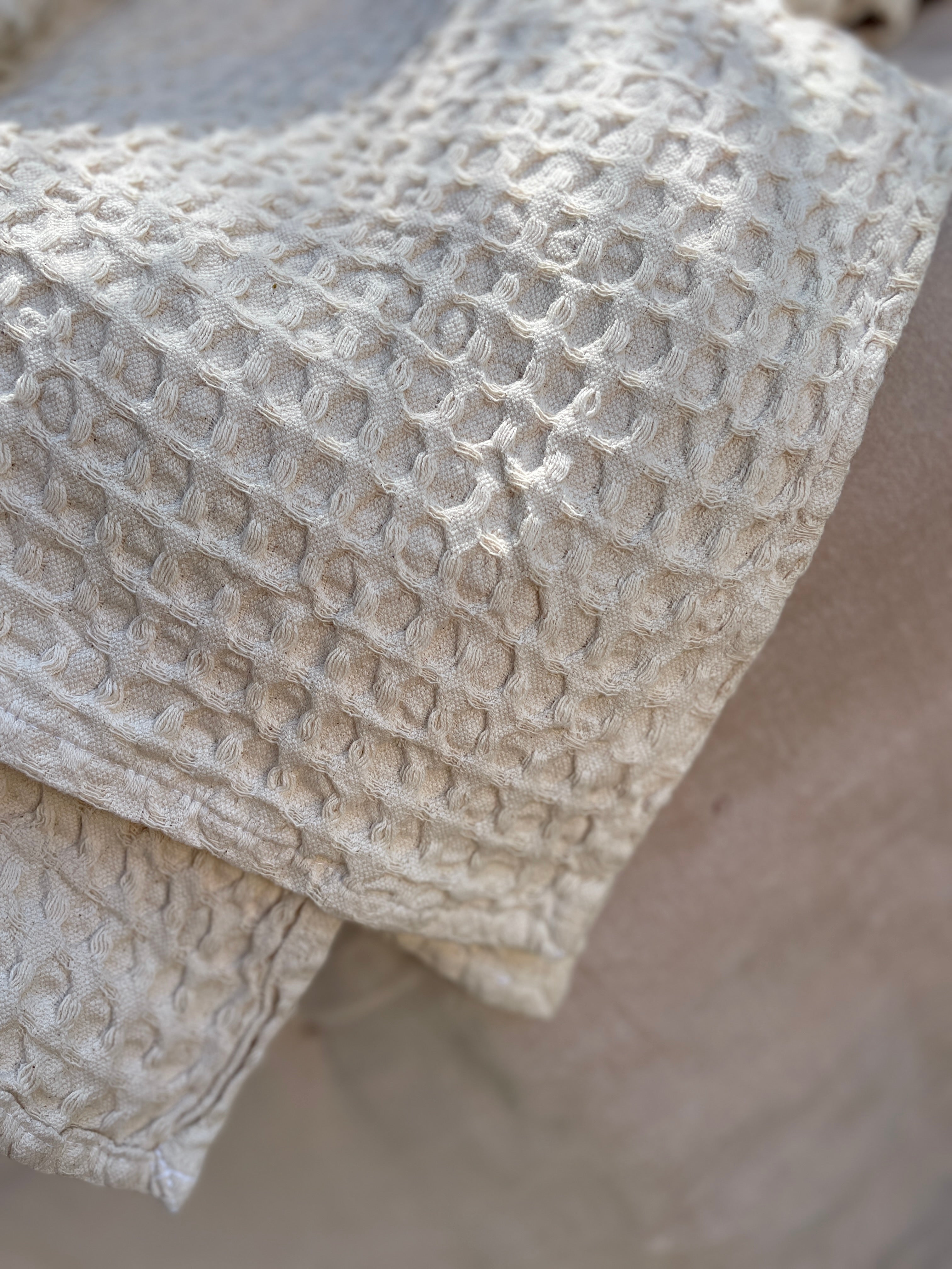 Stonewashed Soft Linen Waffle Blanket - SOFT CREAM