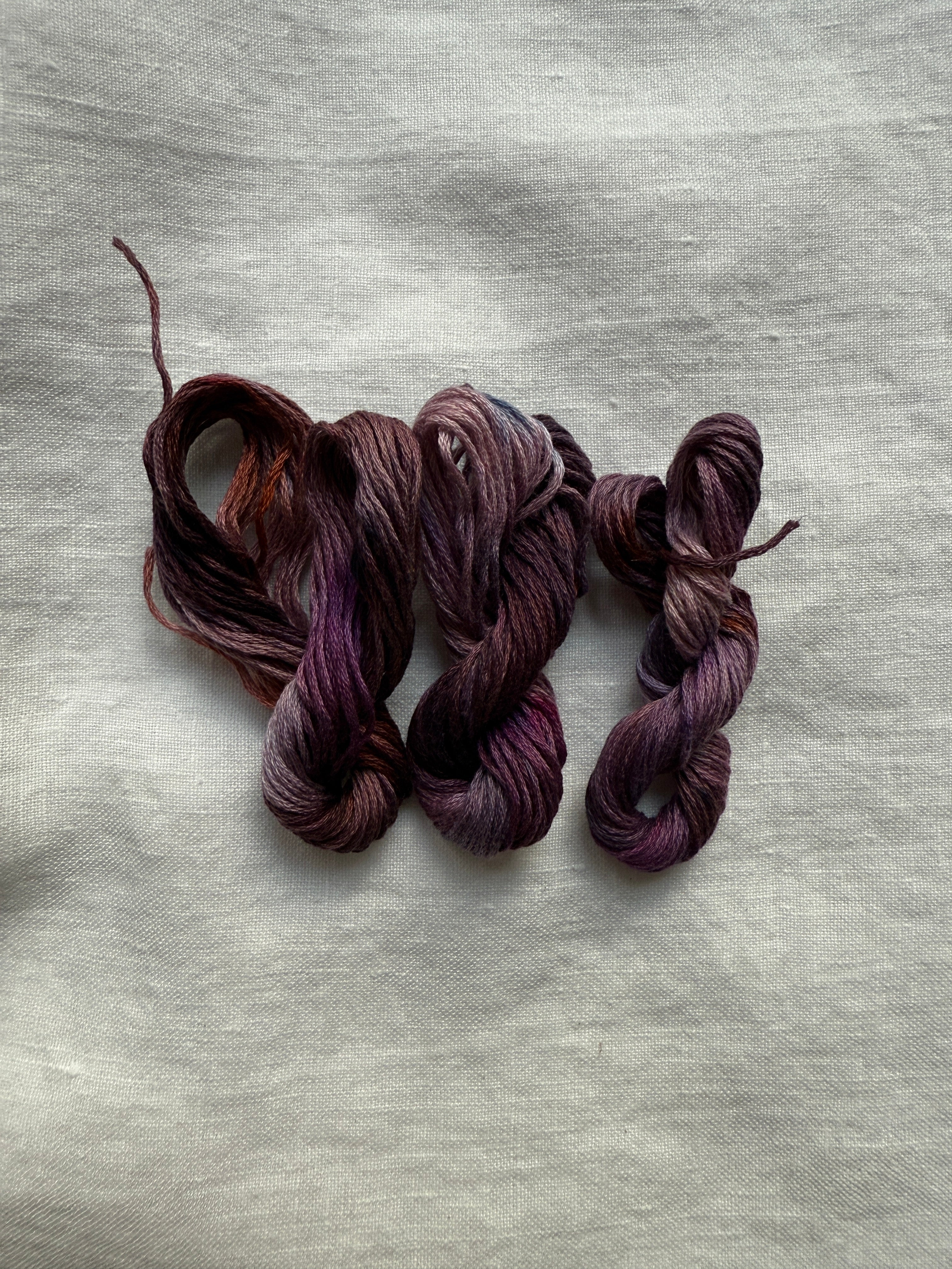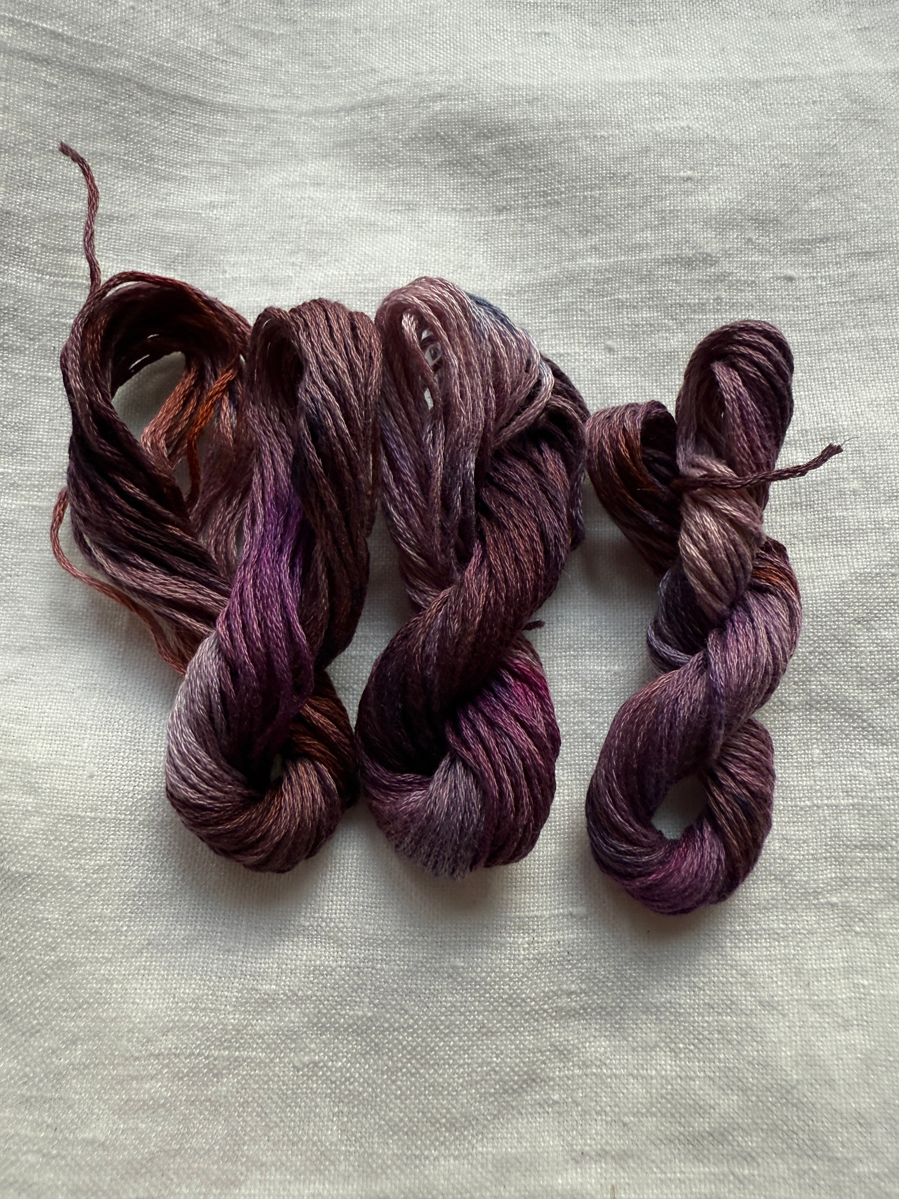Moody Mauves Hand Dyed Variegated Embroidery Thread Trio