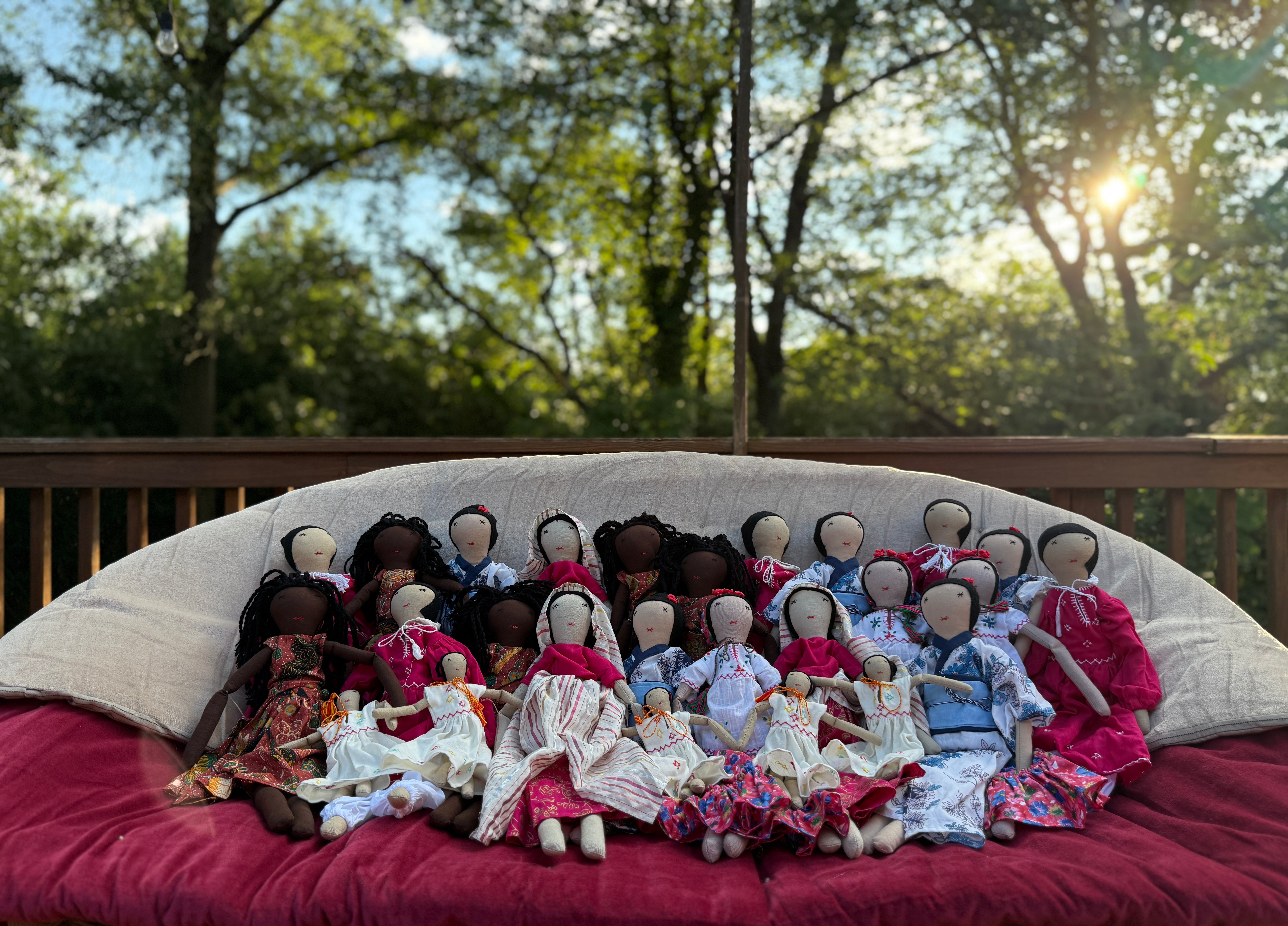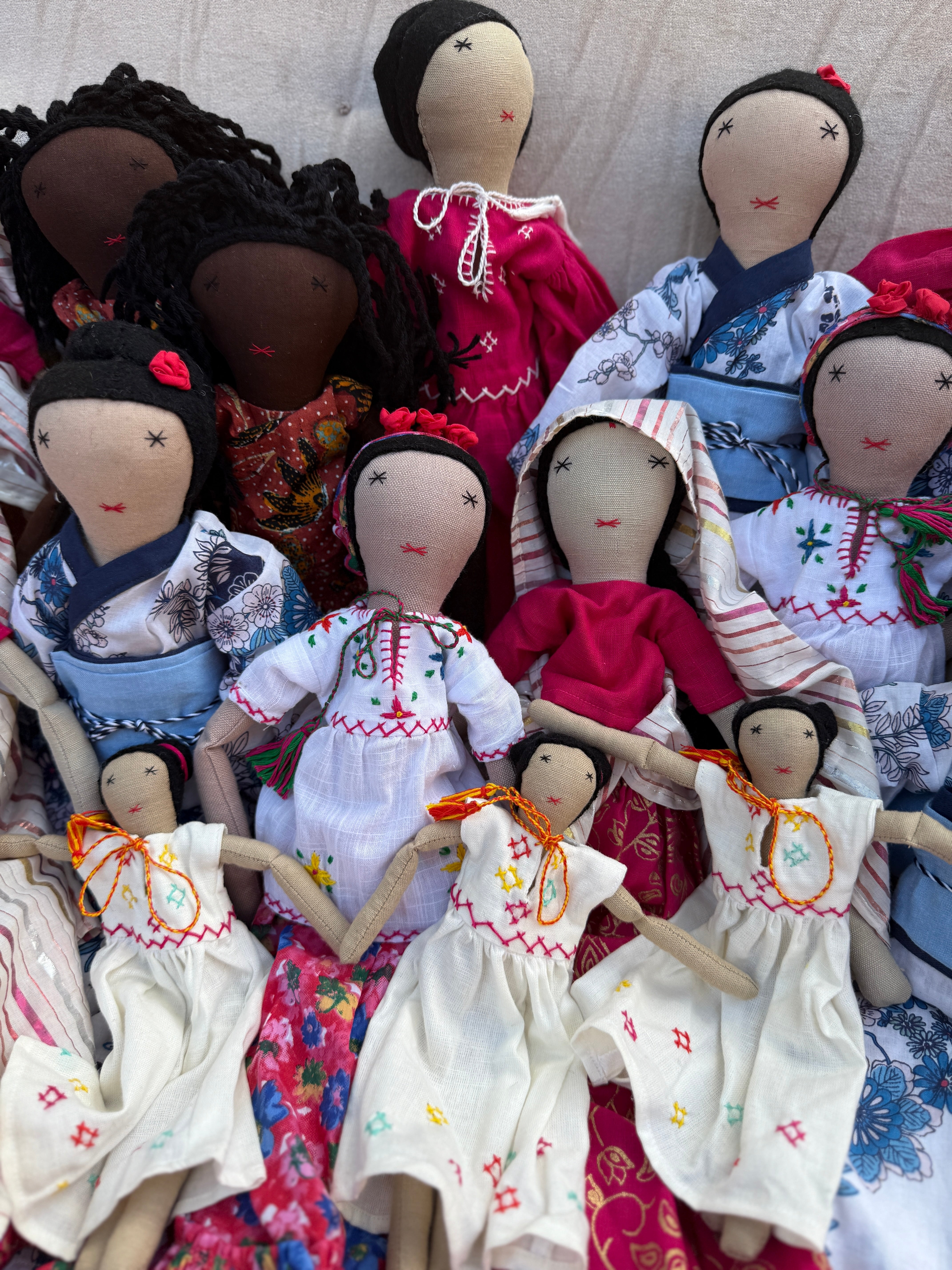 Frida, a radiant vision of floral delight, captivates with her vibrant presence. Handcrafted by Afghan women amidst their plight, she emerges as a work of art, stitched with love from waste fabric. Adorned with intricate embroidery and patterns on her skirt and heart, Frida carries the stories, hopes, and dreams of her creators.