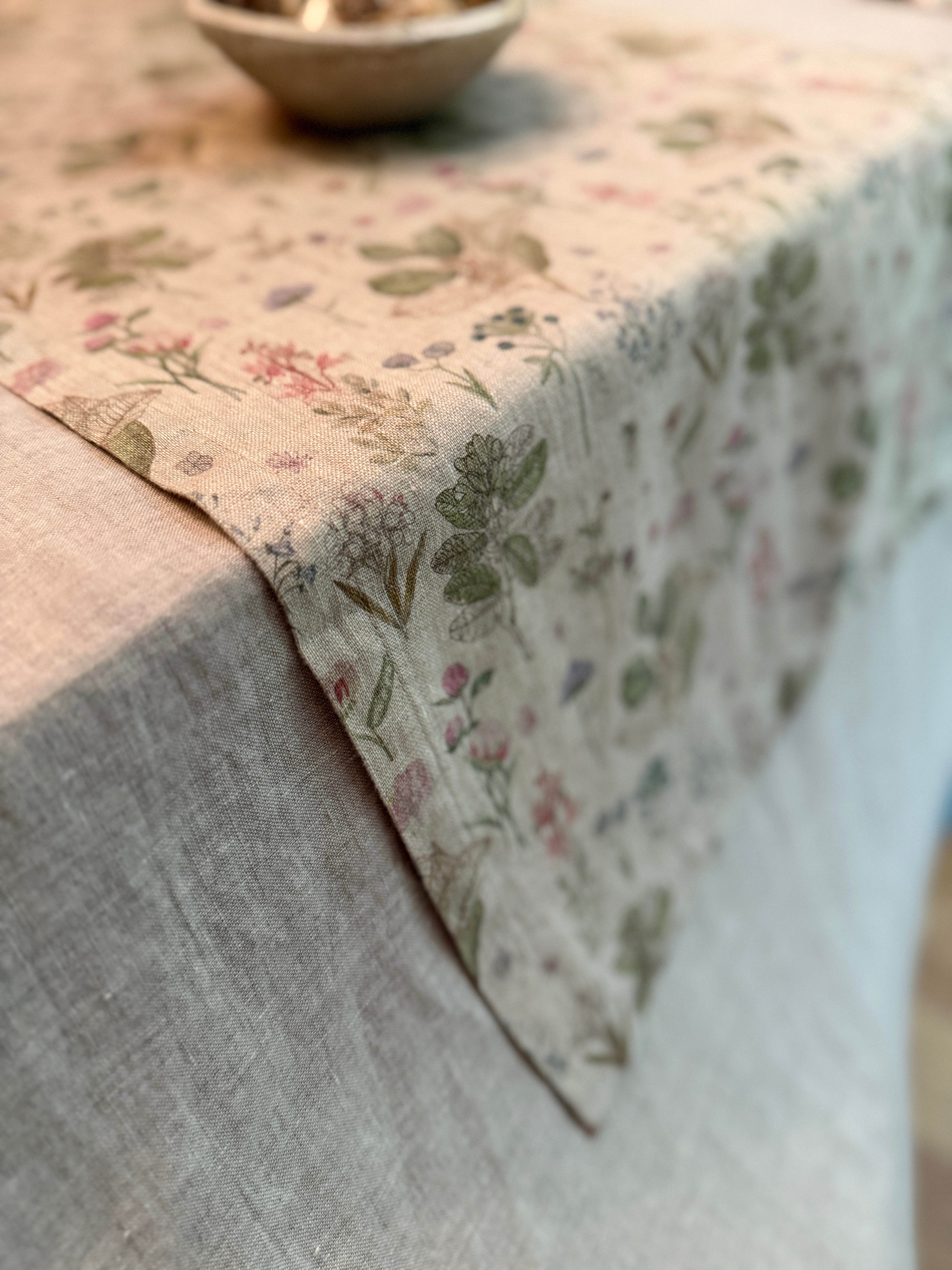 Flower Meadow 100% Natural Linen Tablecloth - Oeko Tex Certified