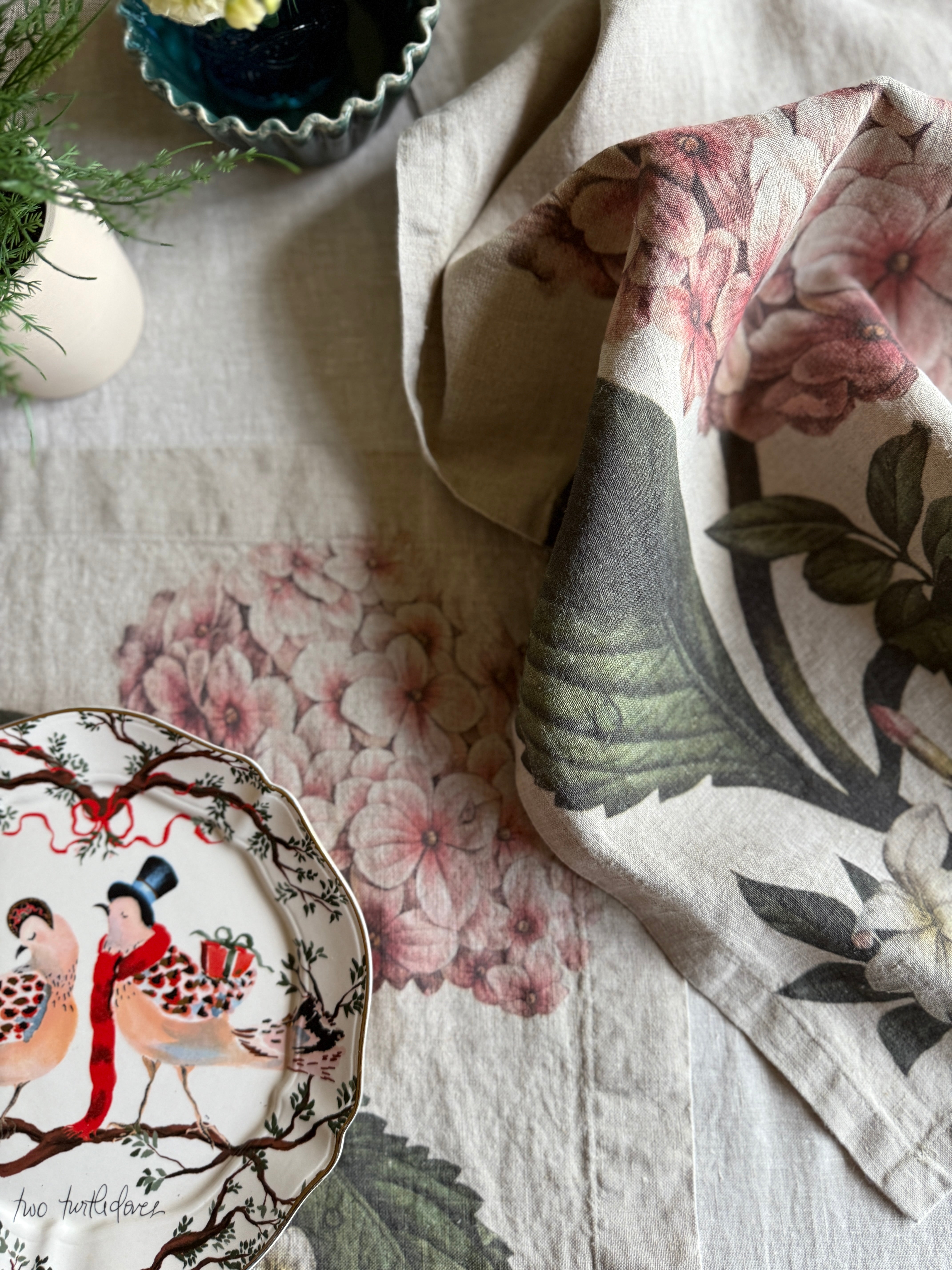 Hydrangea 100% Natural Linen Table Runner - Oeko Tex Certified