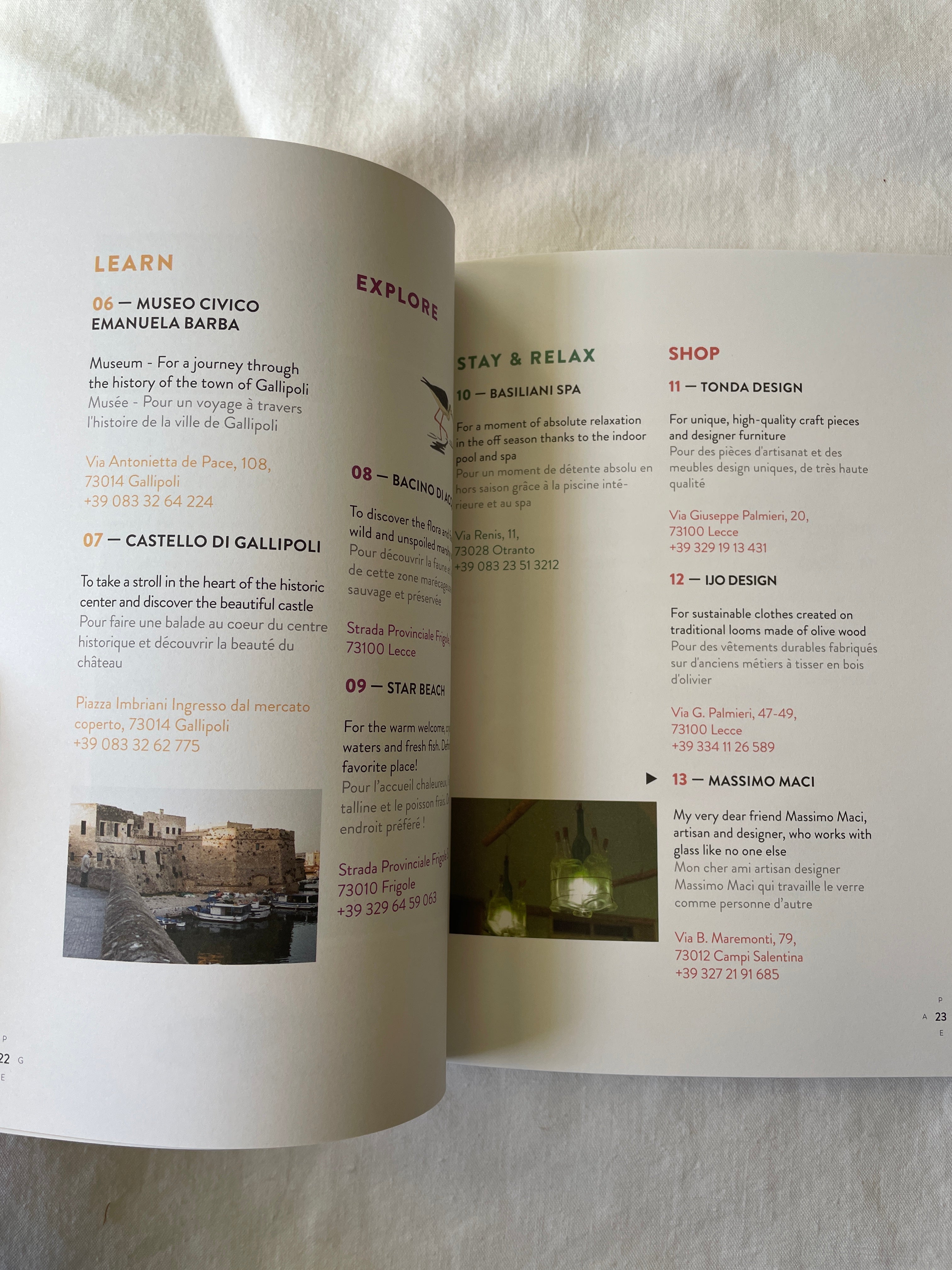 "The heel of the Boot of Italy, a region so rich and enigmatic, without which Italy wouldn't be able to walk straight". Get to know Puglia through fascinating local personalities who share their hidden gems, ideas and most importantly feelings about their home. A sculptor & designer, a cheese maker, ceramist, film director, chef,  a renovator and an olive tree grower shares what to visit, learn explore and admire as well as why they're passionate for the region.