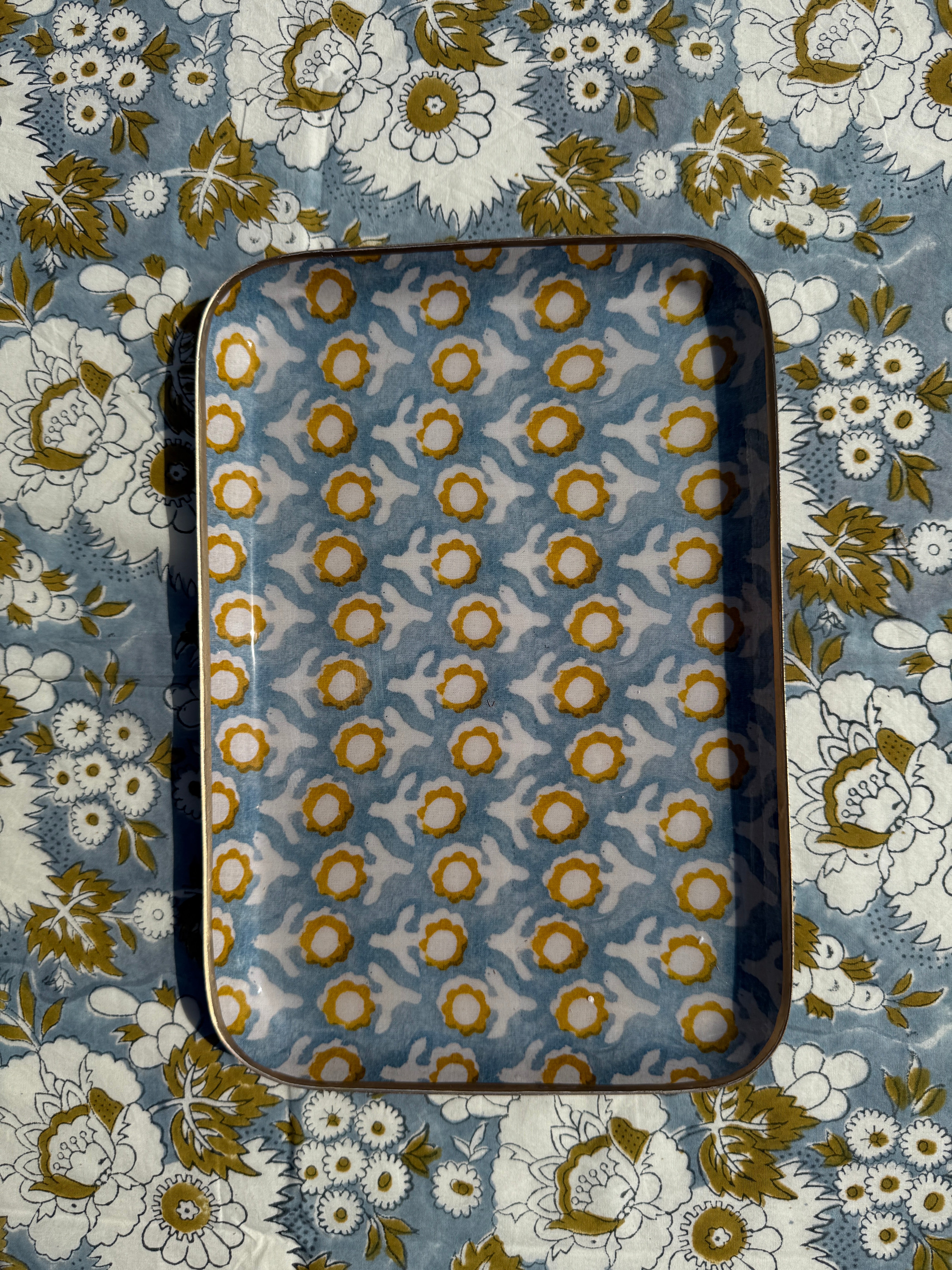 Designed with a hand-painted golden border. It is a unique piece, shaped by Indian artisans' hands.