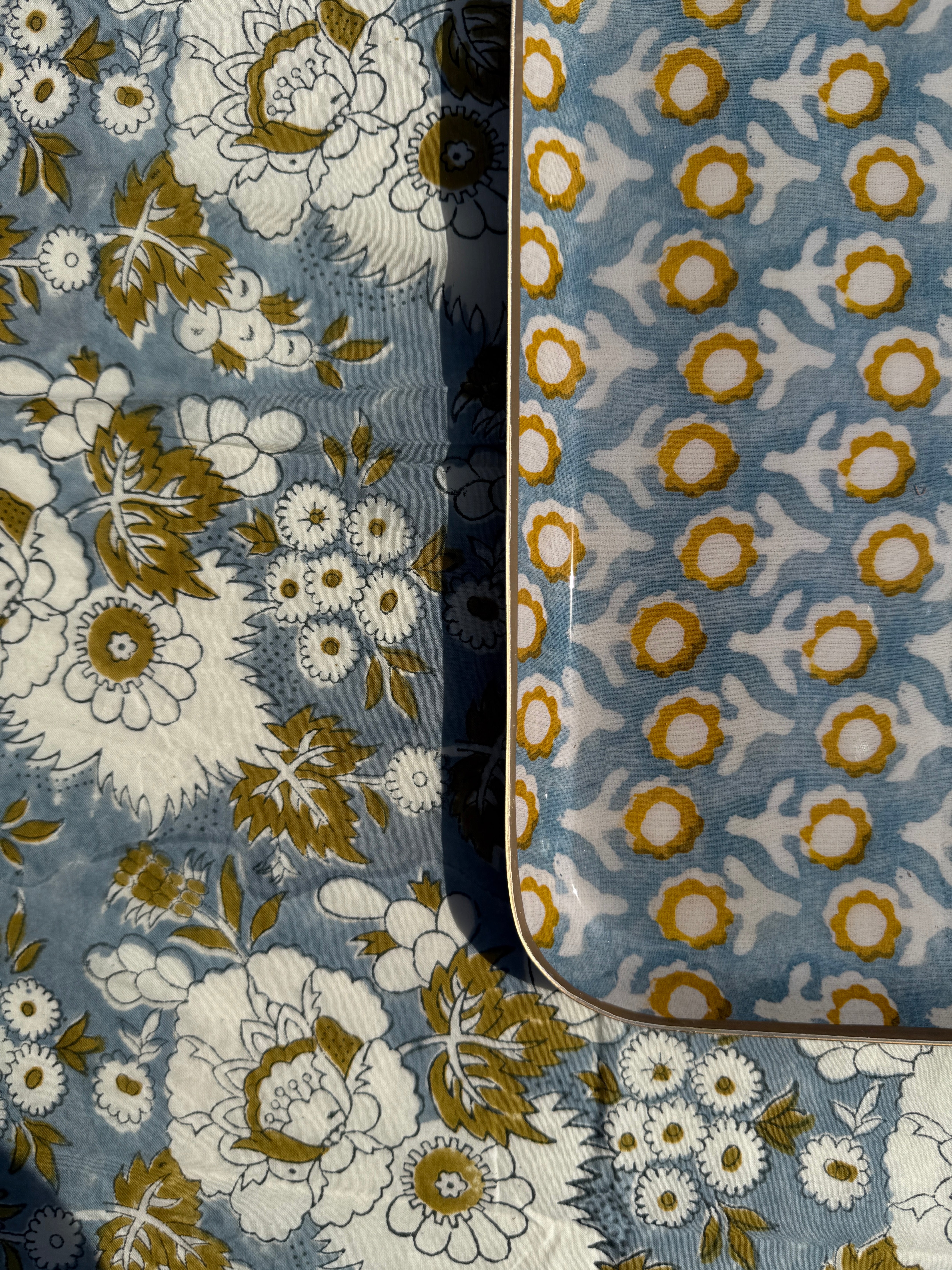 Colorful optimism in a floral tray in enamelled in metal for longevity. Crafted in a fashionable palettes this mid size model will accompany you during celebratory moments, aperitif, breakfast, and dinner with friends. A practical size for snacks, coffees, afternoon treats.