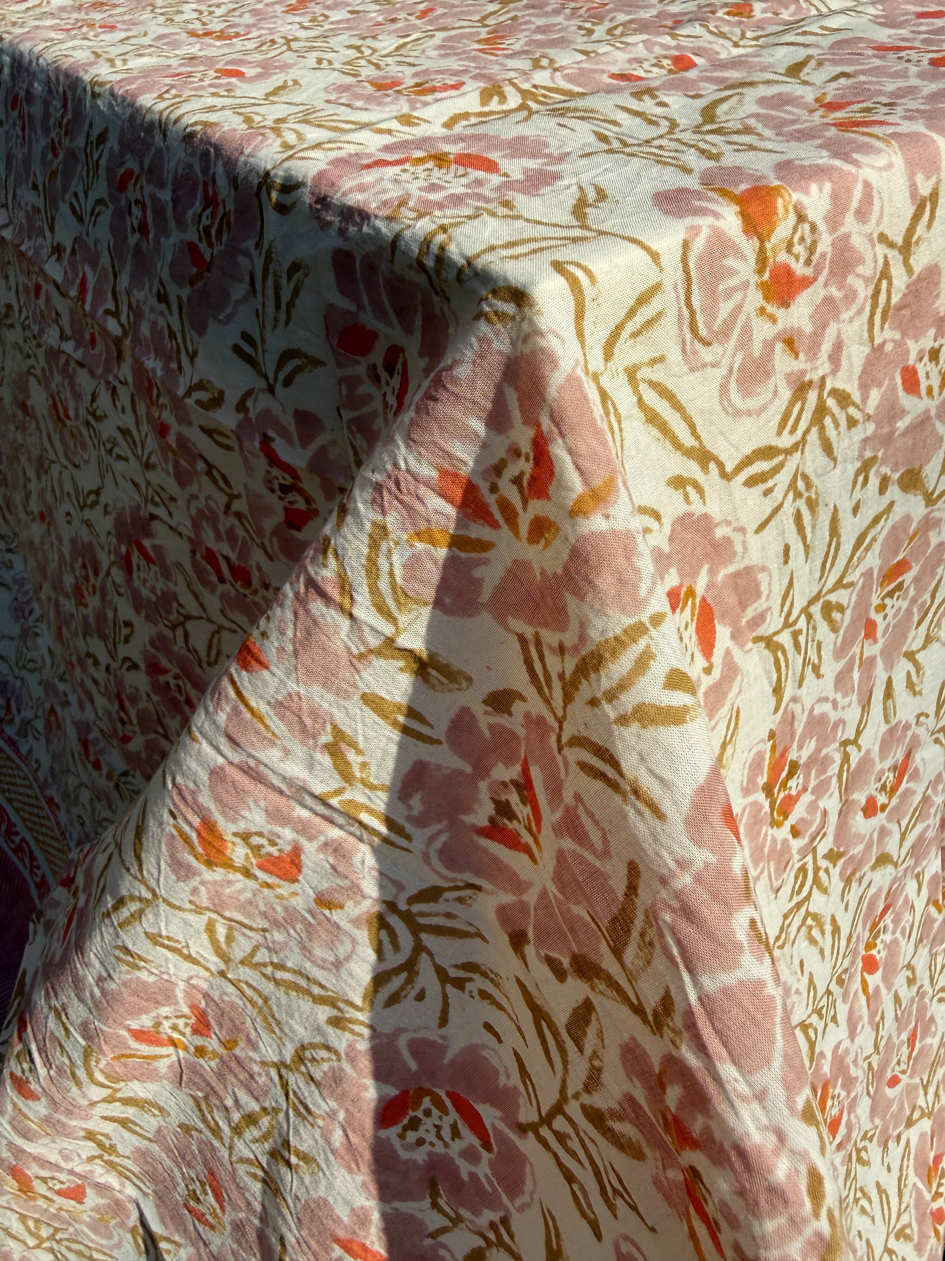 Forever Summer Peachy Hand Printed Tablecloth