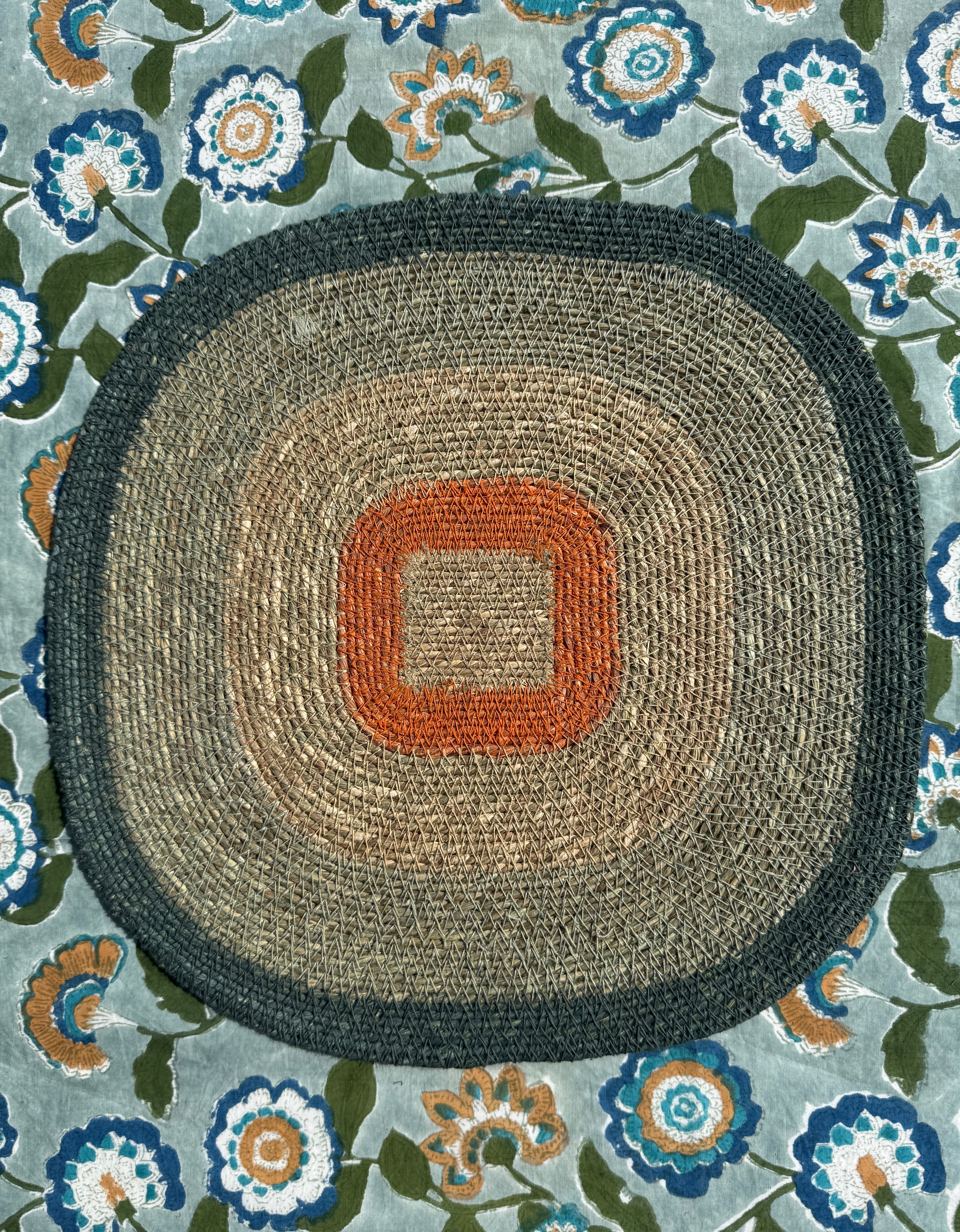 Table mat with cheerful stripes. Love these table sets designed with the natural raffia which are entirely handmade. Beautiful to match with hand printed tablecloth.