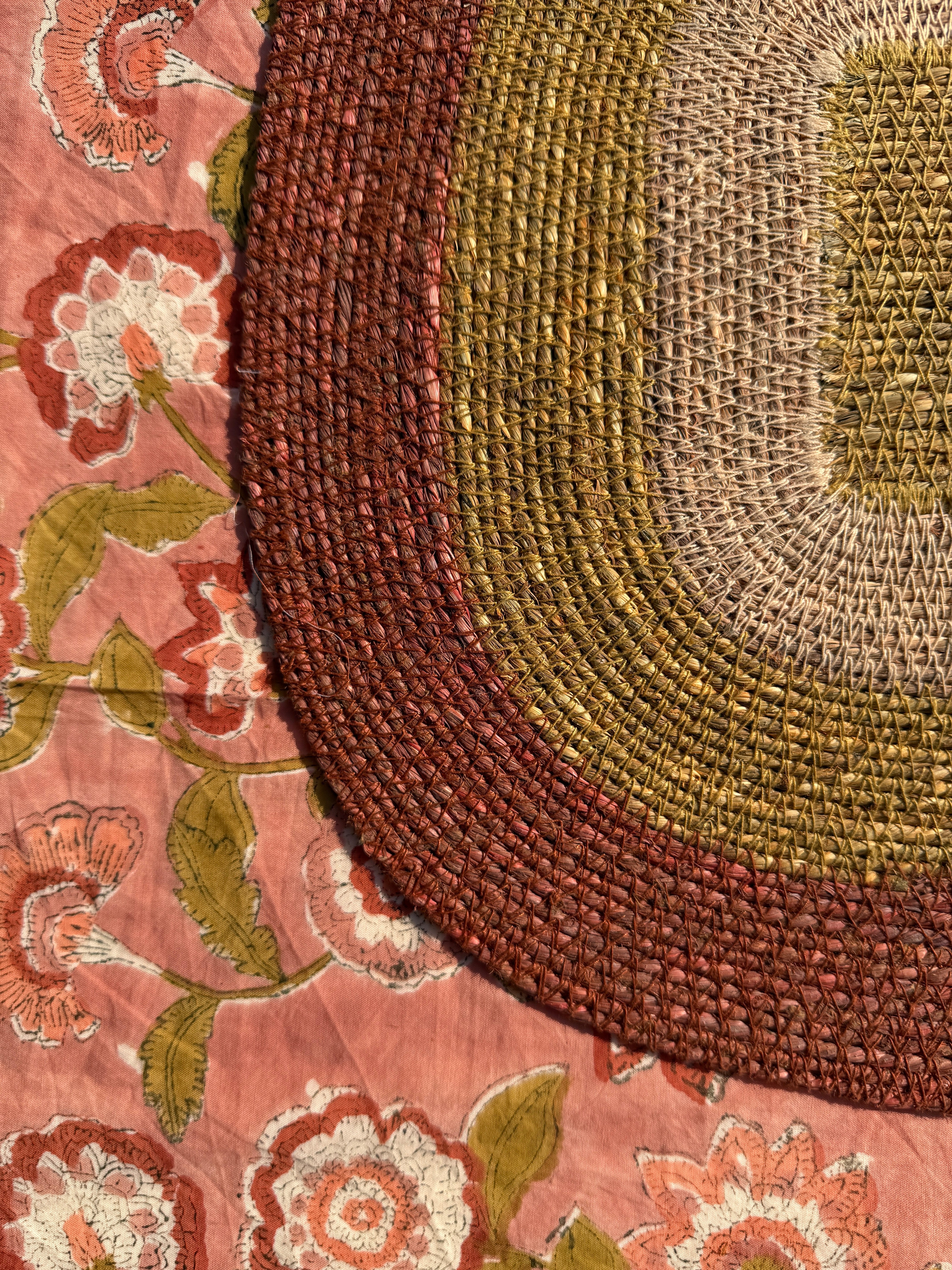 Table mat with cheerful stripes. Love these table sets designed with the natural raffia which are entirely handmade. Beautiful to match with hand printed tablecloth.