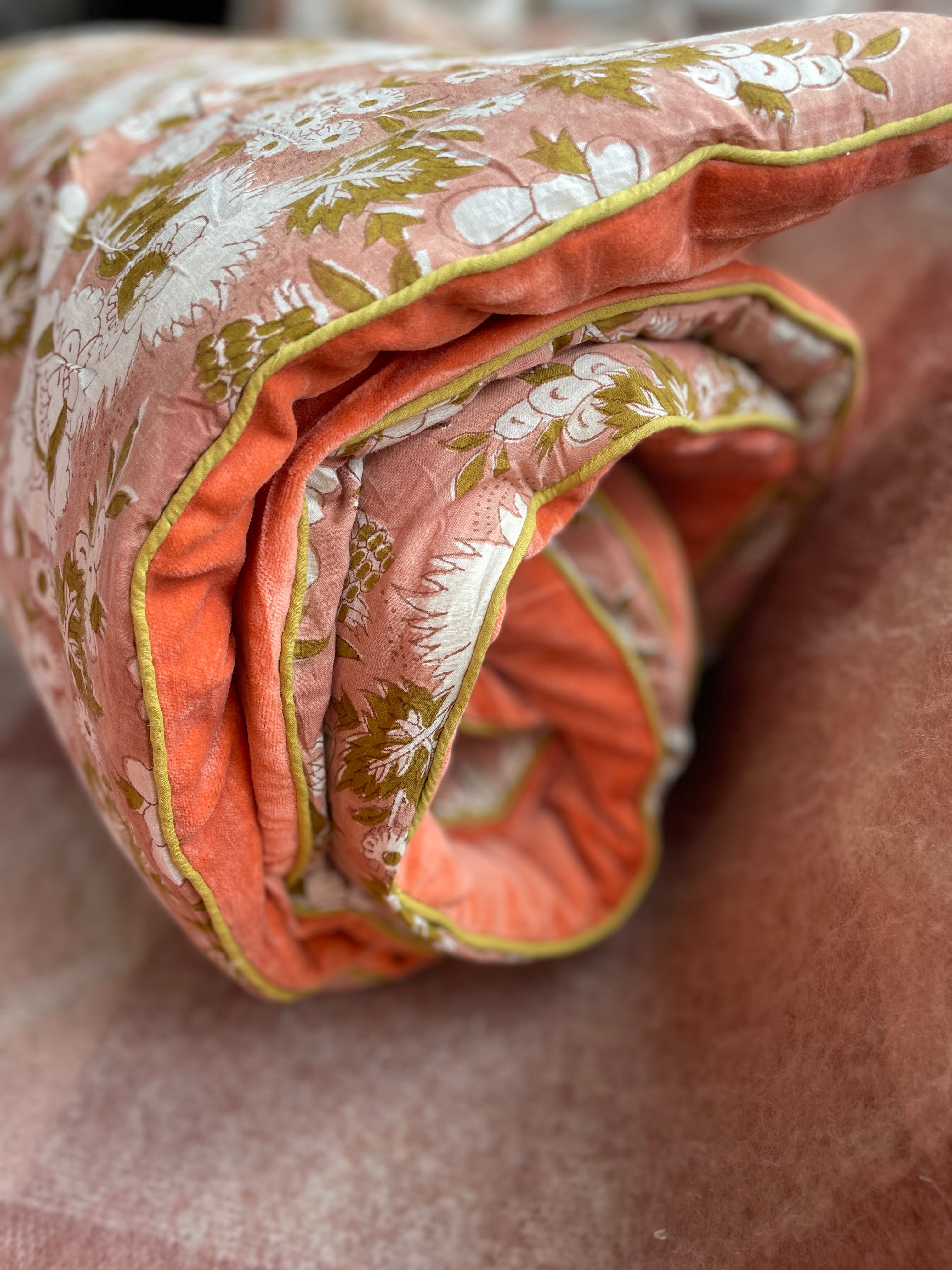 Give a room an instant uplift with this gorgeously hand printed velvet backed sofa topper or why not place it on a bed end?