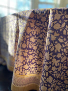 Sweet Purple! This easy care cotton tablecloth will instantly transform a table into a sweet flowery scene. Block printed by hand with gorgeous detailing on edges it's a piece that you can easily carry wherever you go and create a space that feels like home in seconds.