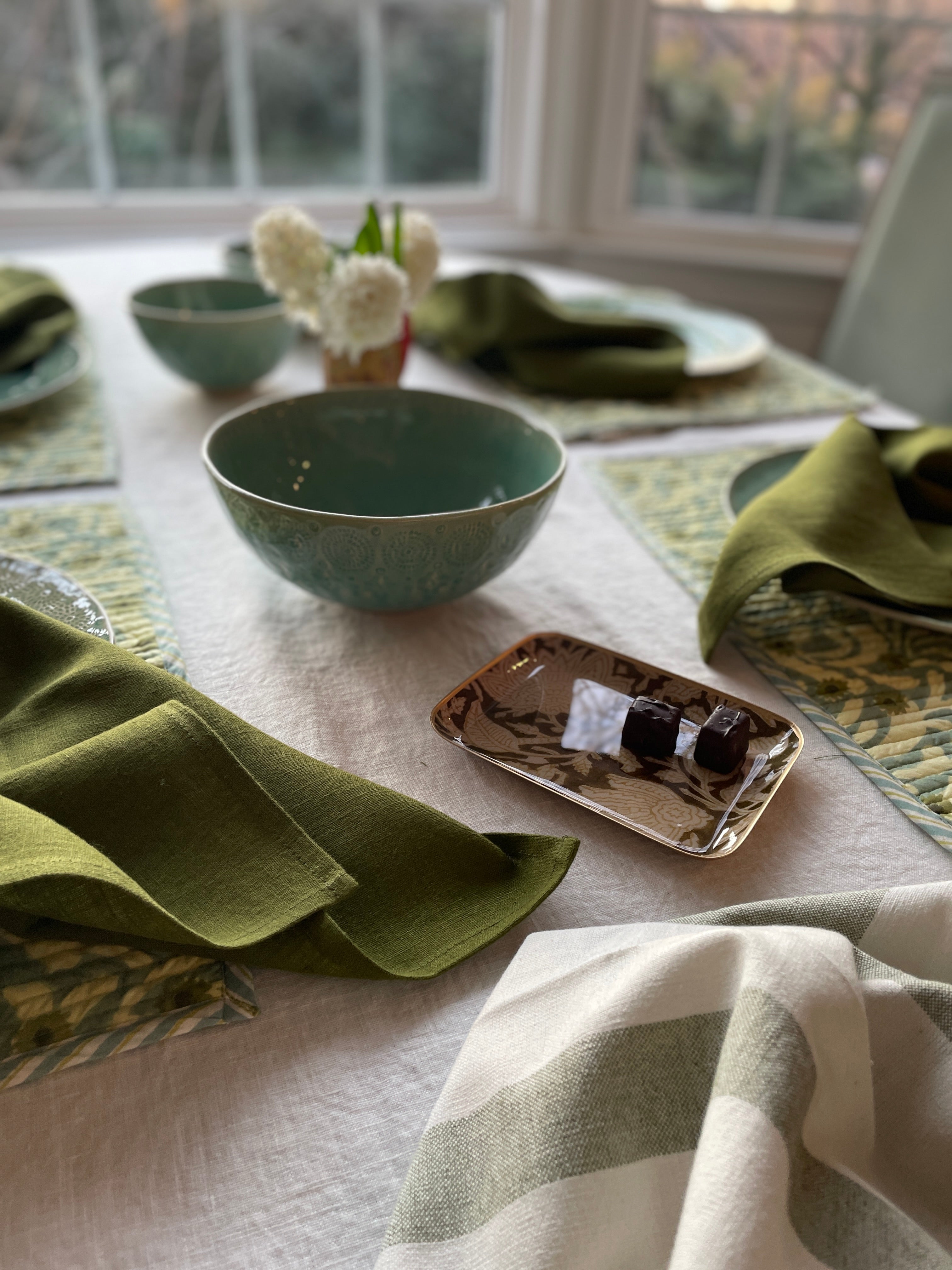 Timeless Classic Olive Linen Napkin/Placemat - Set of 2