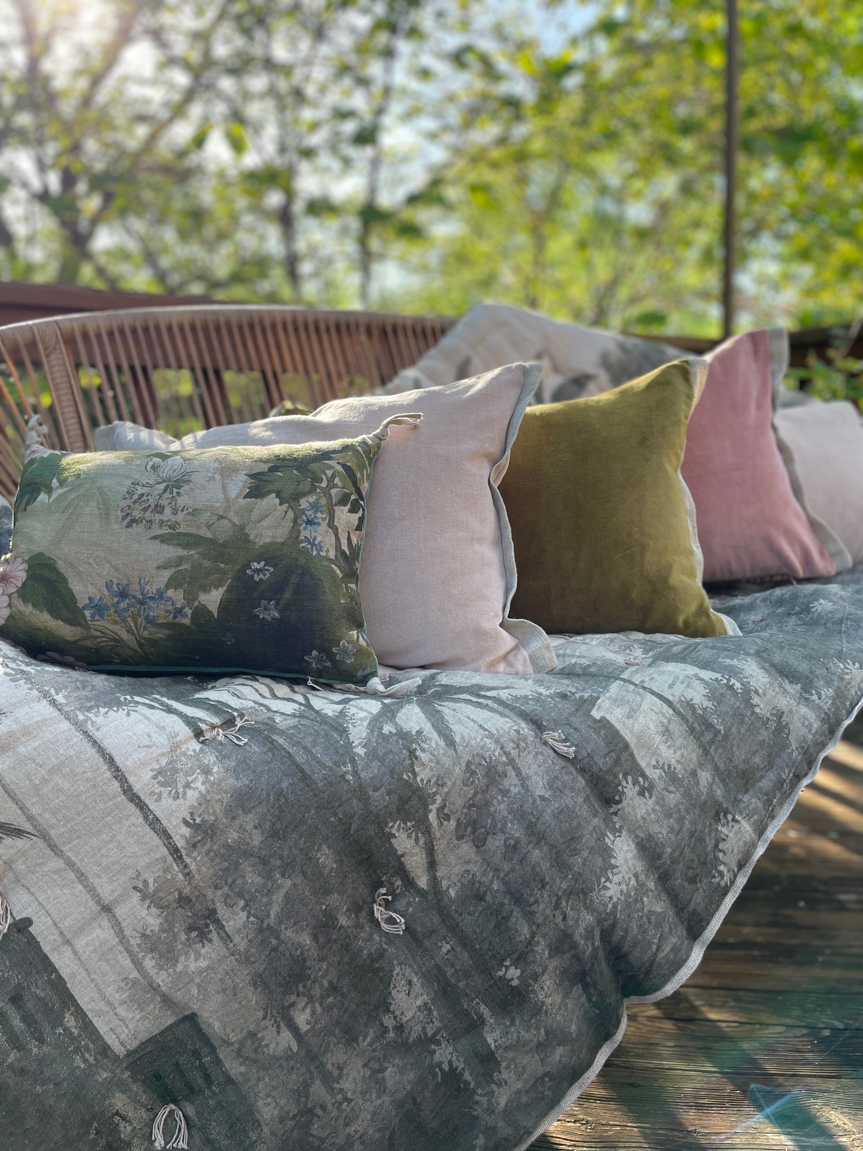 Material : 100% Linen and silk velvet, side detail linen, hidden zip