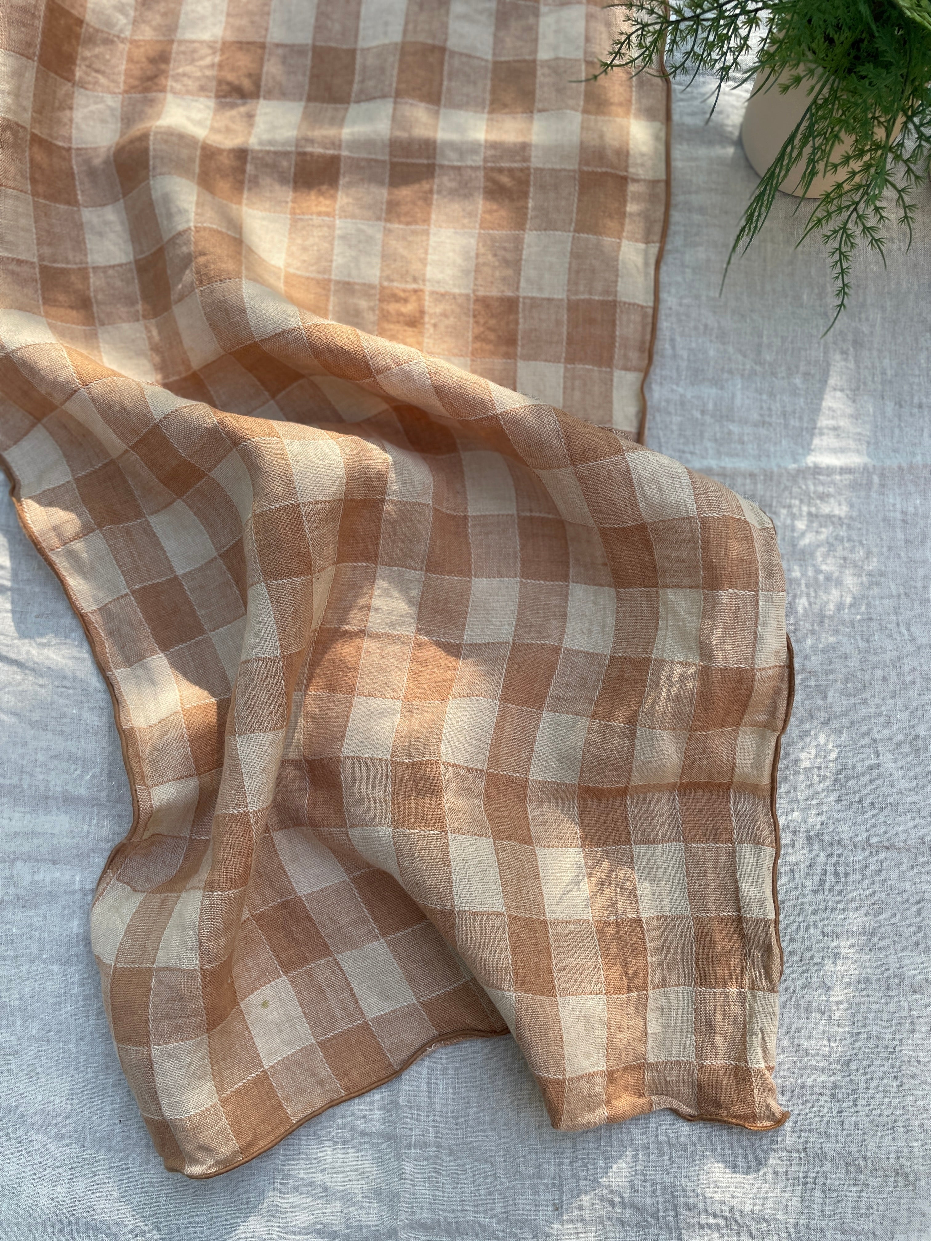 Vintage Inspired Gingham French Linen Kitchen Towel - Nougat