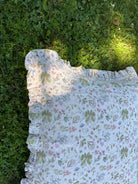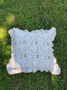 Large Romantic Green Frilly Linen Pillow - 100% Natural Oeko Tex Certified