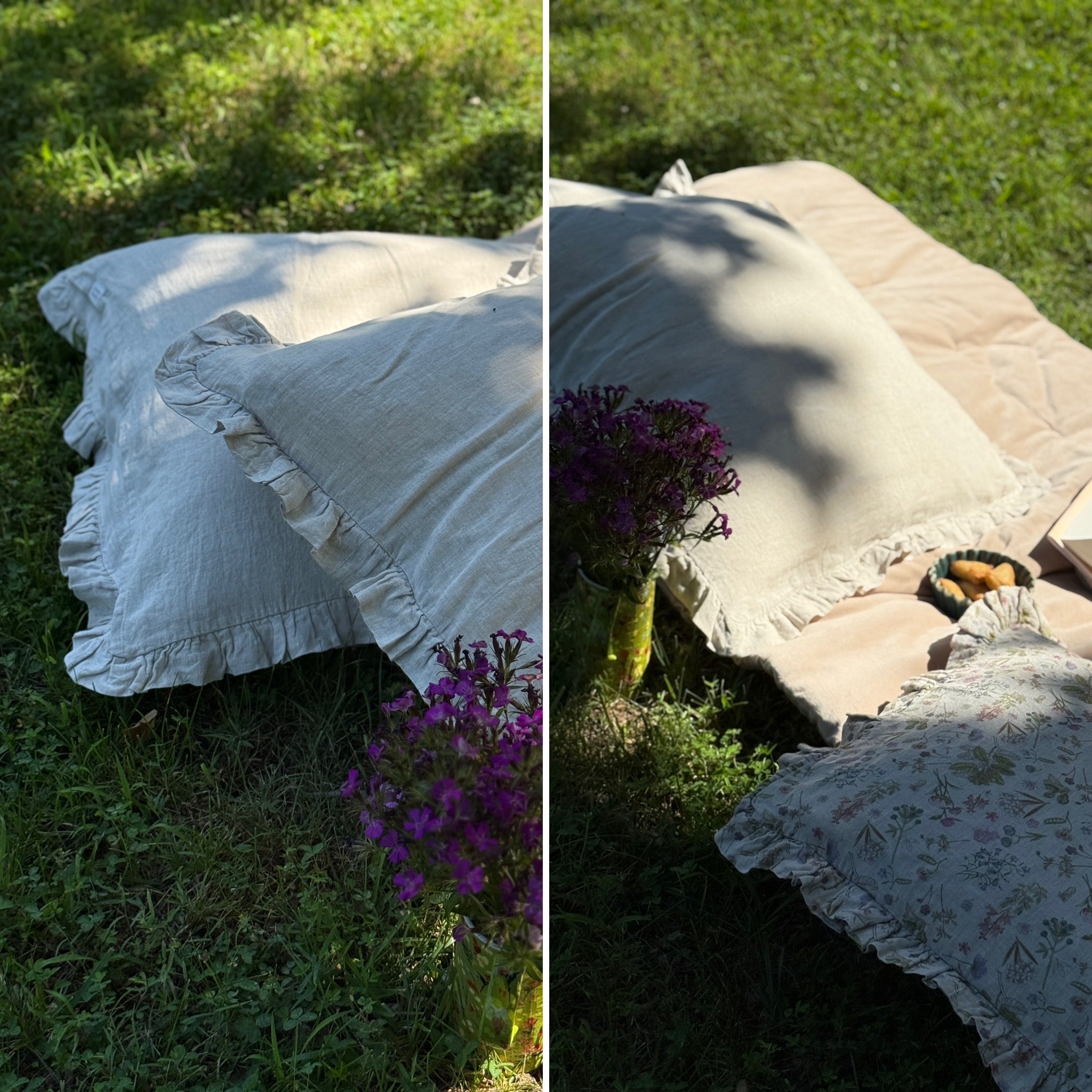Large Romantic Frilly Linen Pillow - 100% Natural Oeko Tex Certified