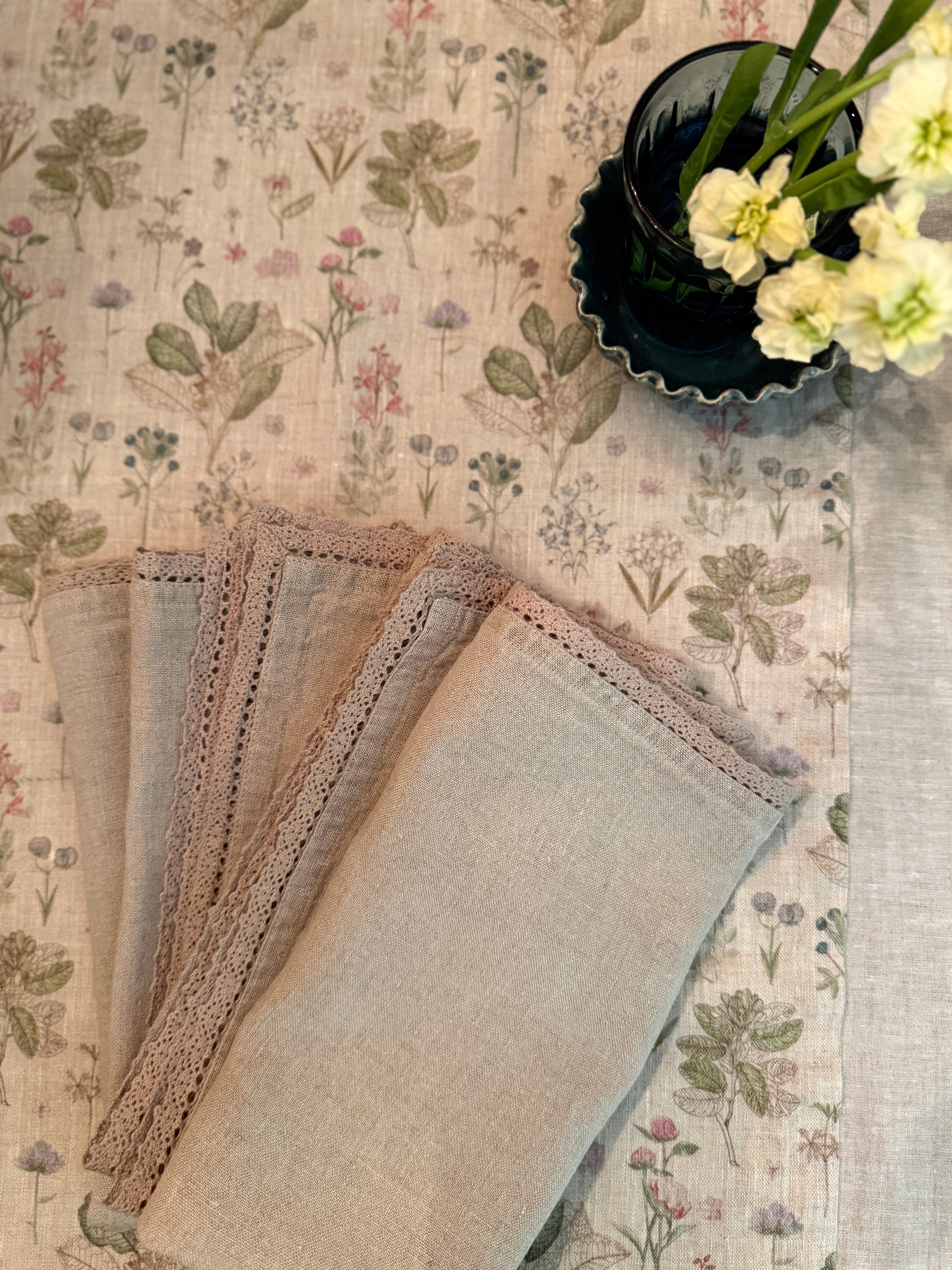 Flower Meadow 100% Natural Linen Tablecloth - Oeko Tex Certified