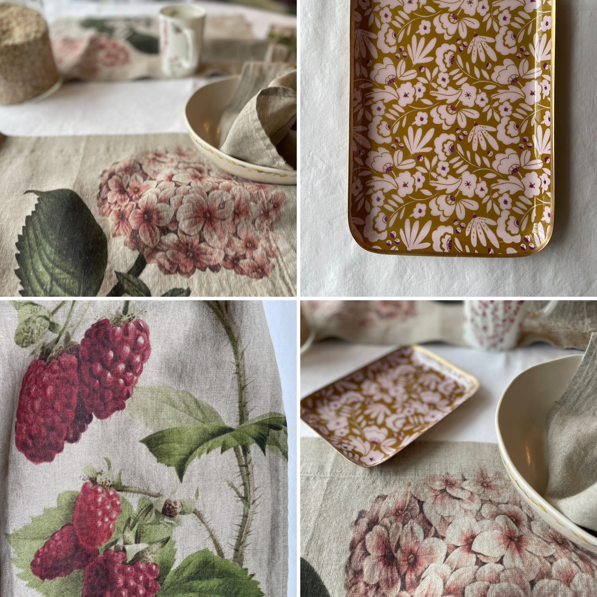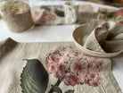 Printed with flora and fauna on undyed linen it's the perfect piece for indoor or outdoor tables where you want to invite nature's transforming vibes to the table.