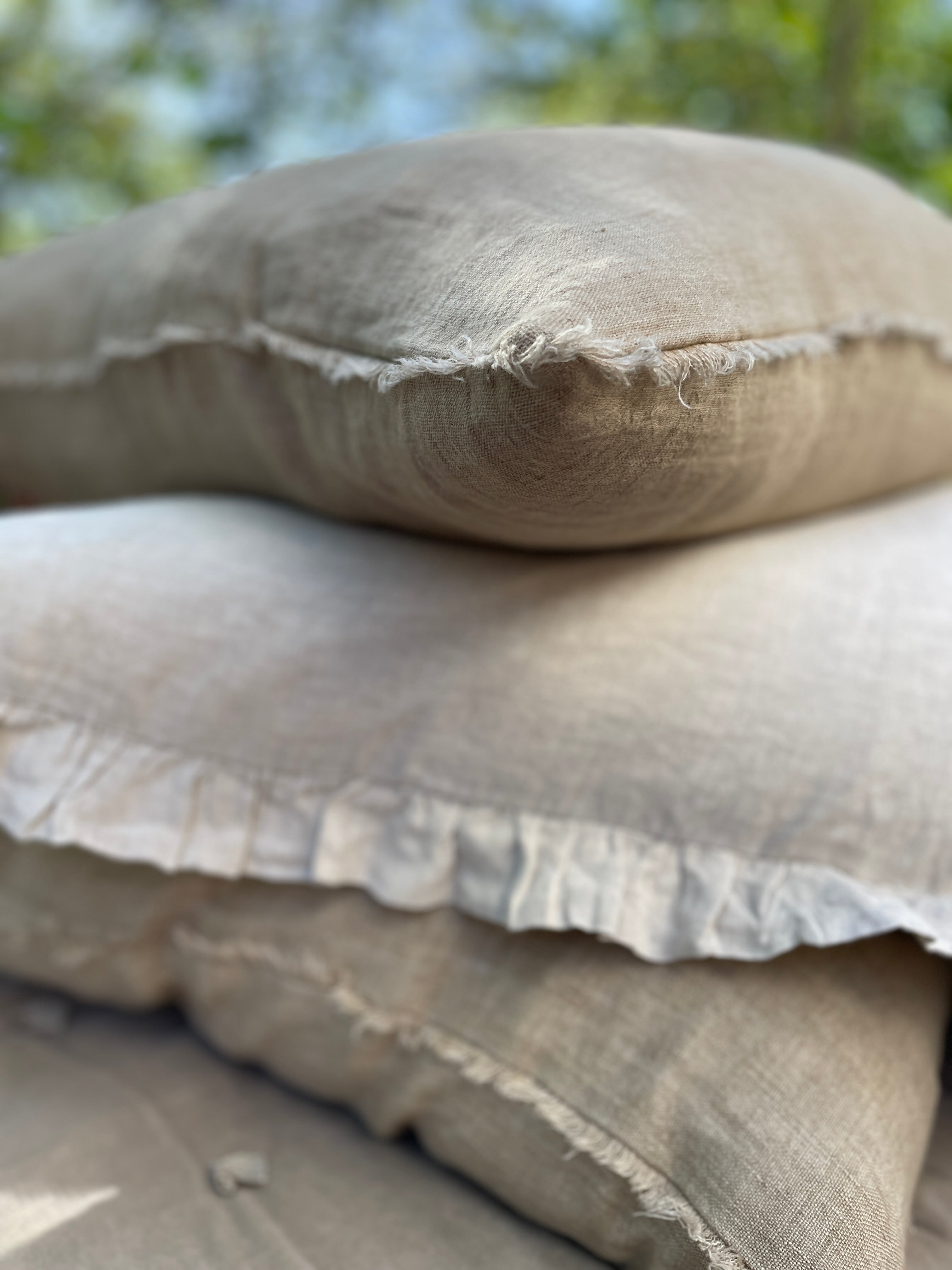 Large Decorative Linen Pillow - 100% Natural - OATMEAL