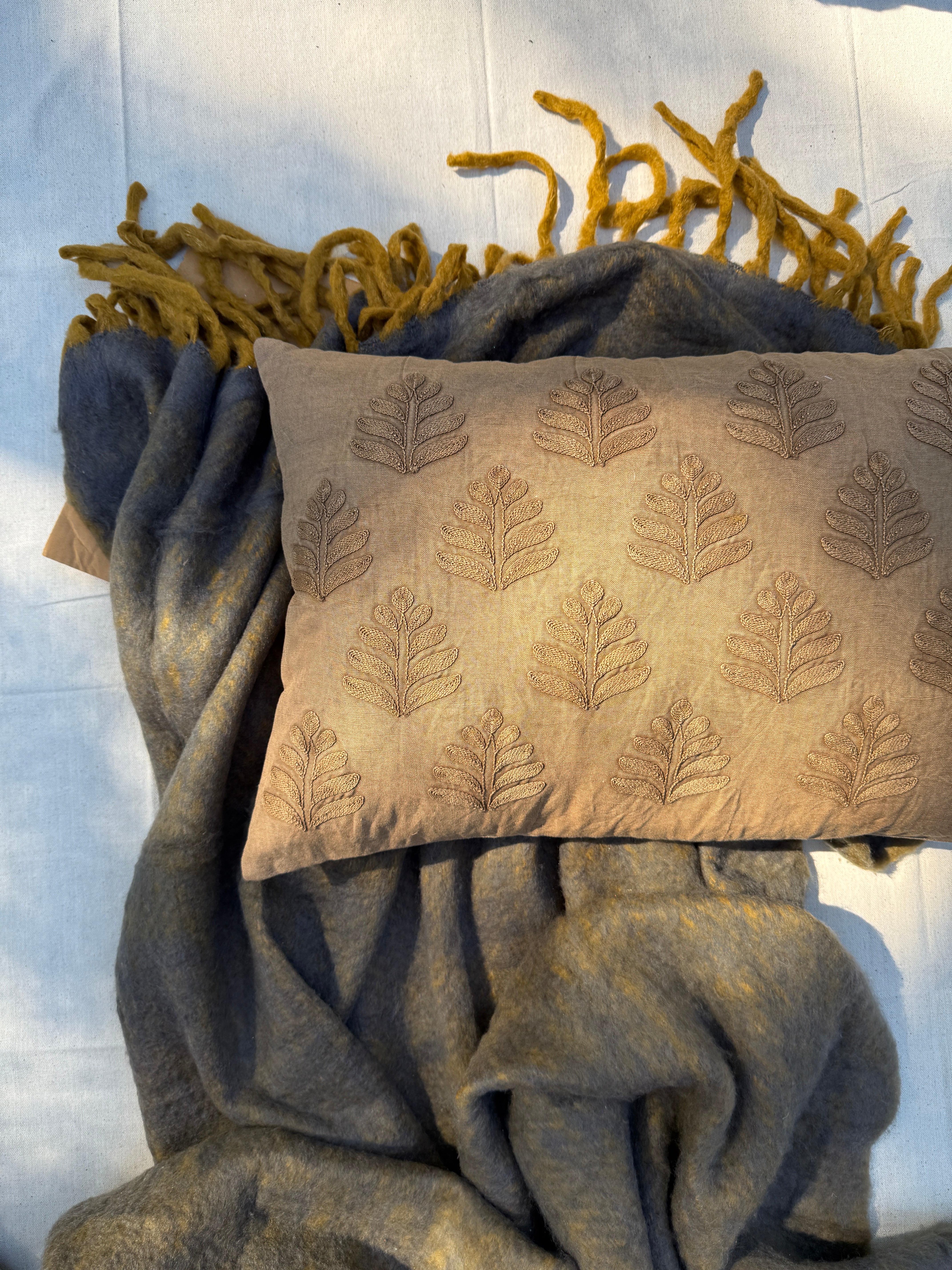 Cinnamon Embroidered Linen Pillow Case