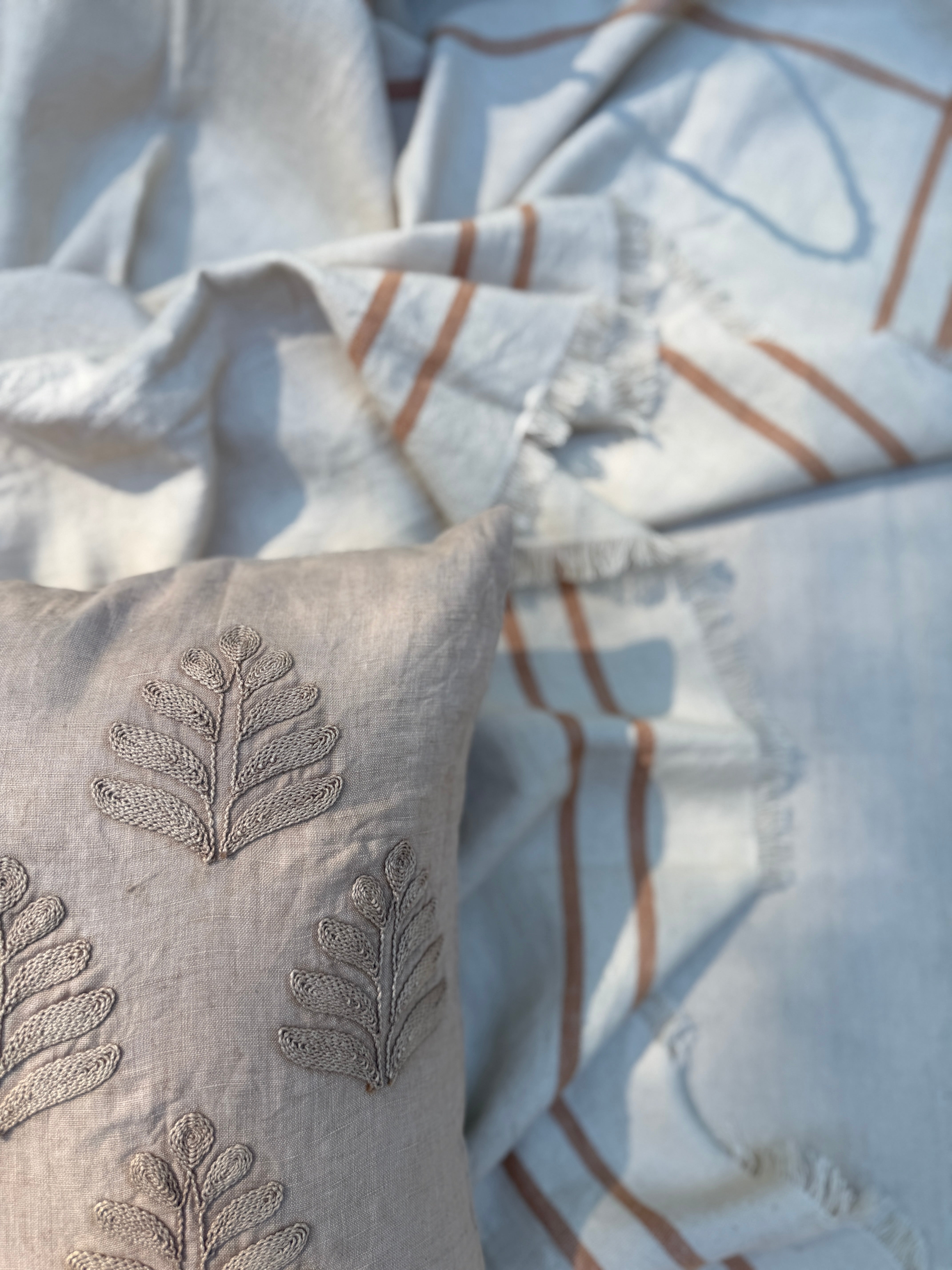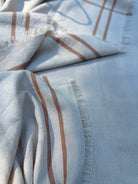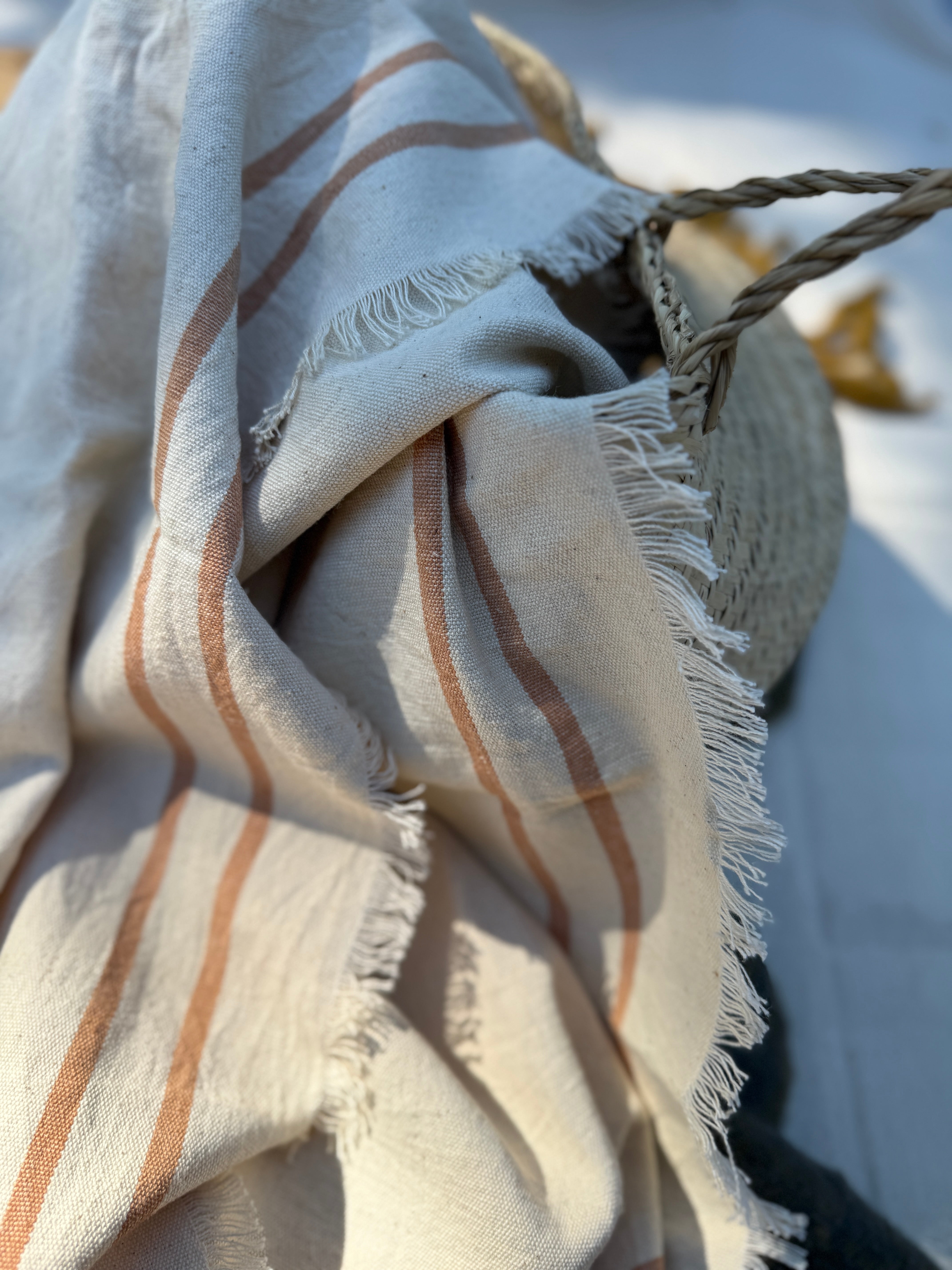 Incredibly soft to the touch, lightweight and crafted with care, this throw features a minimalist border stripe pattern with a micro fringe detail. Whether draped over a sofa or snuggled up on chilly evenings, this throw brings an air of elegance with a pop of color to your decor.