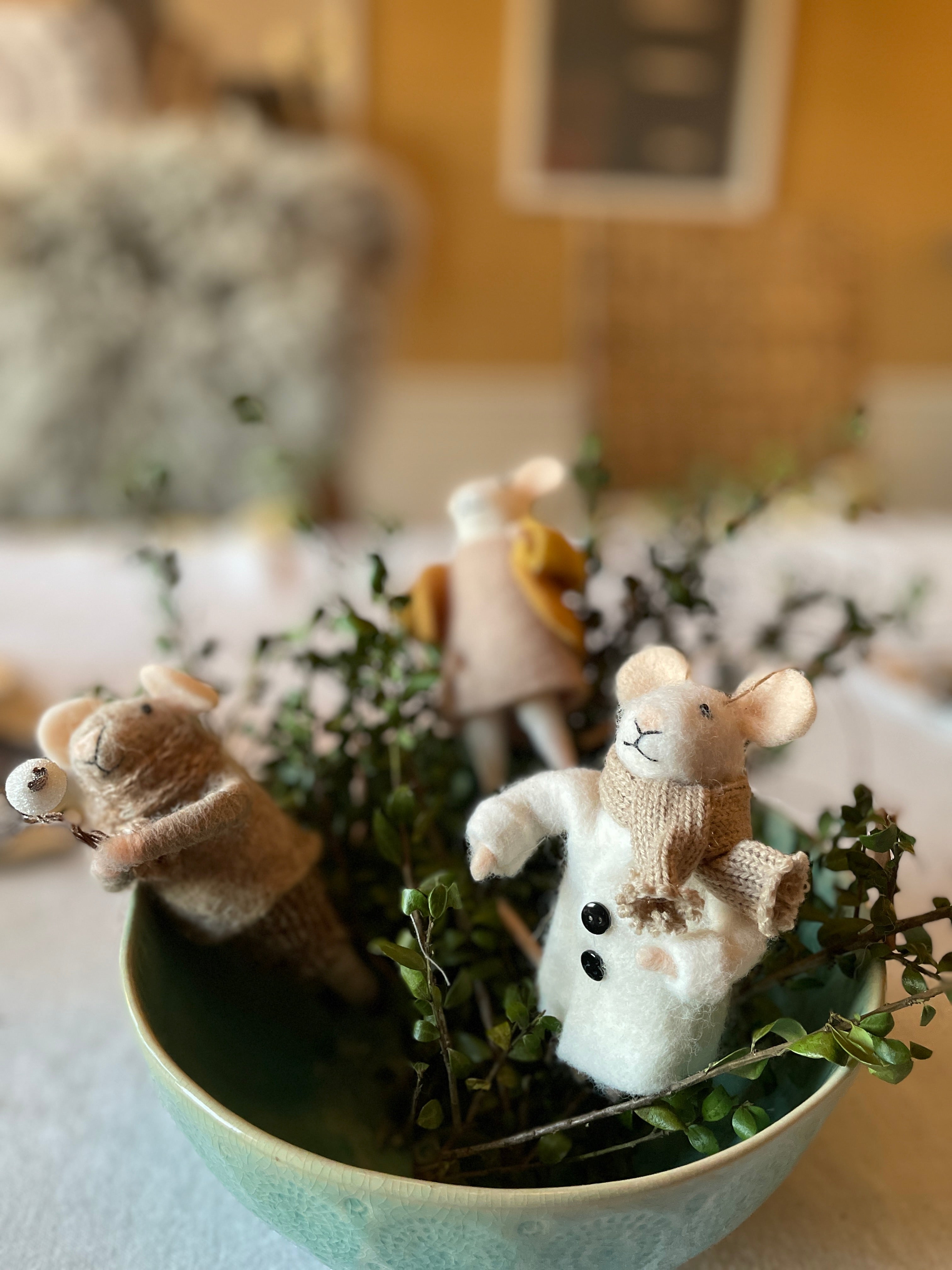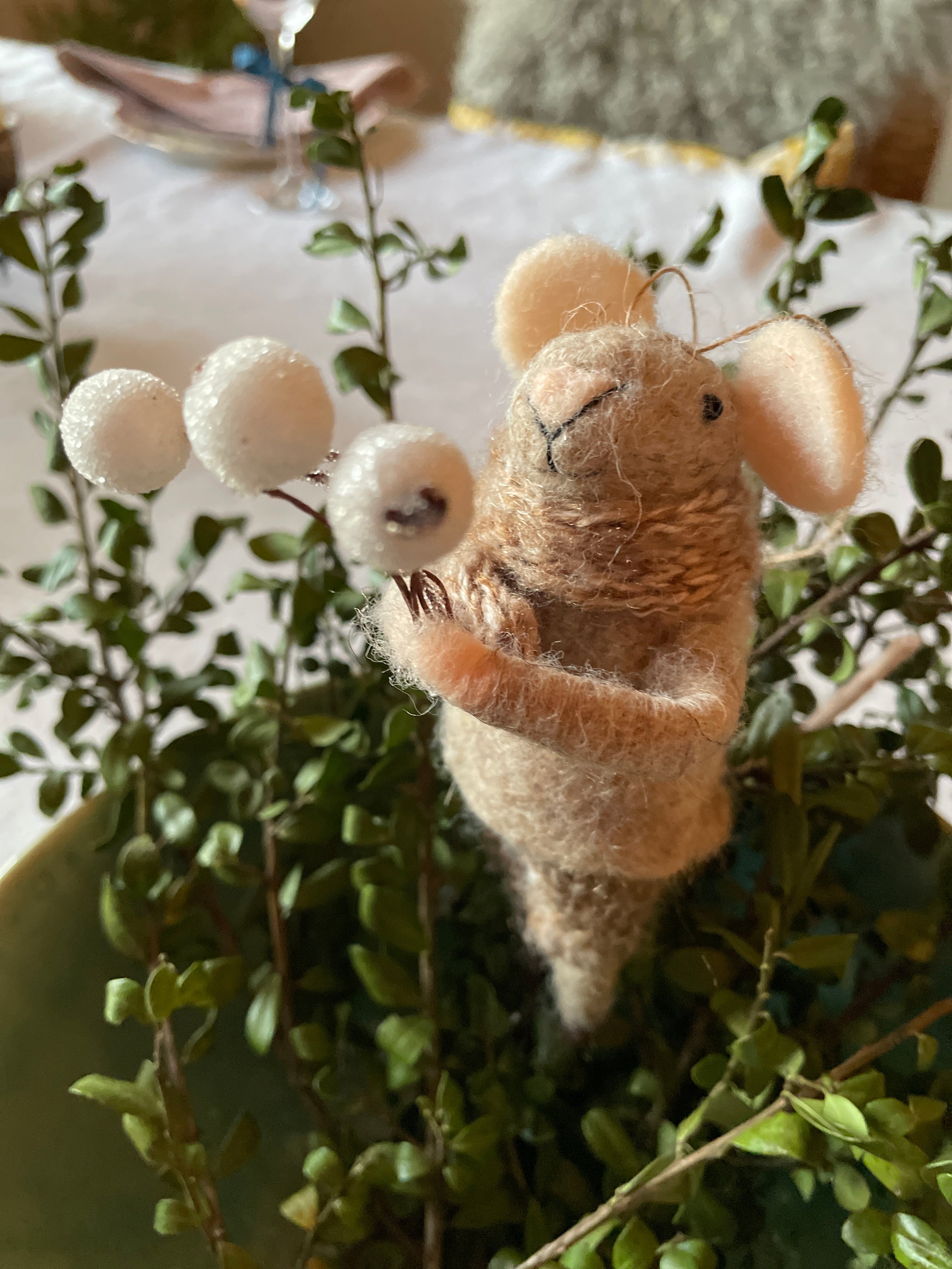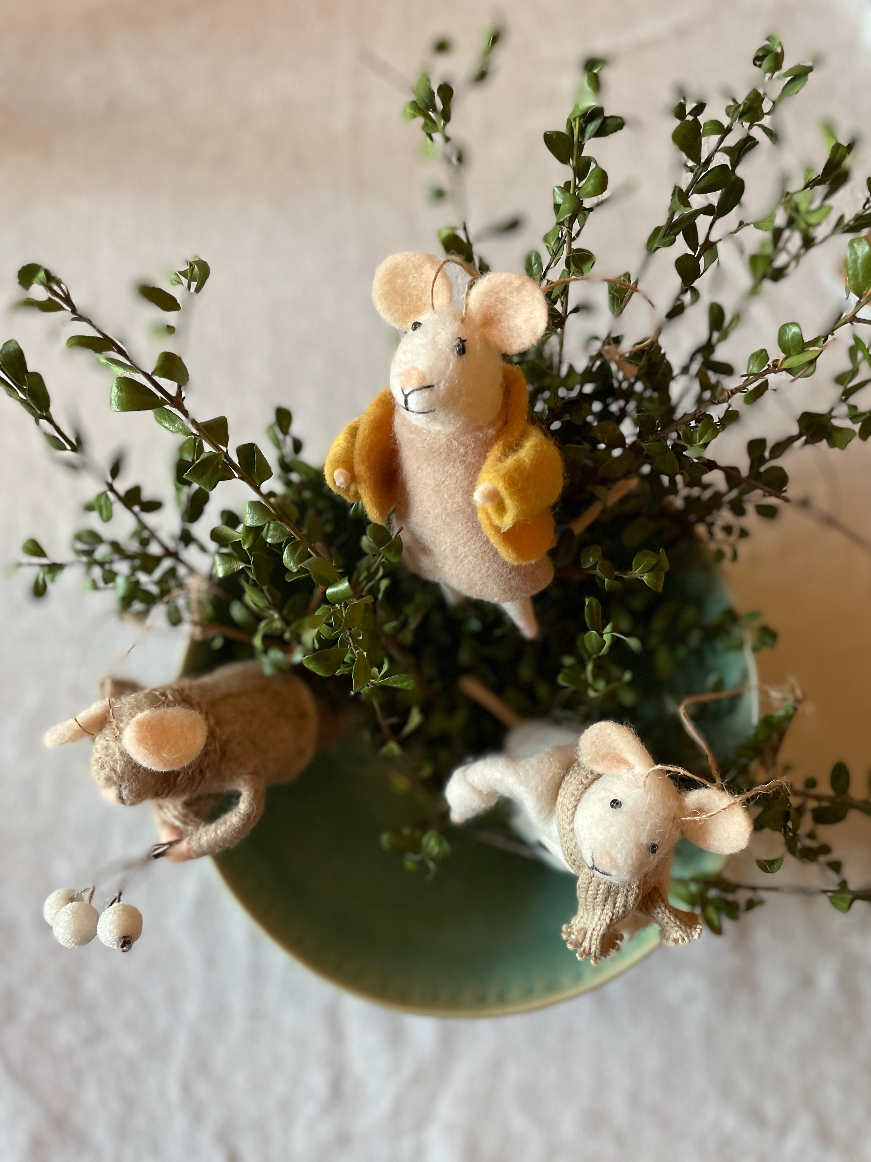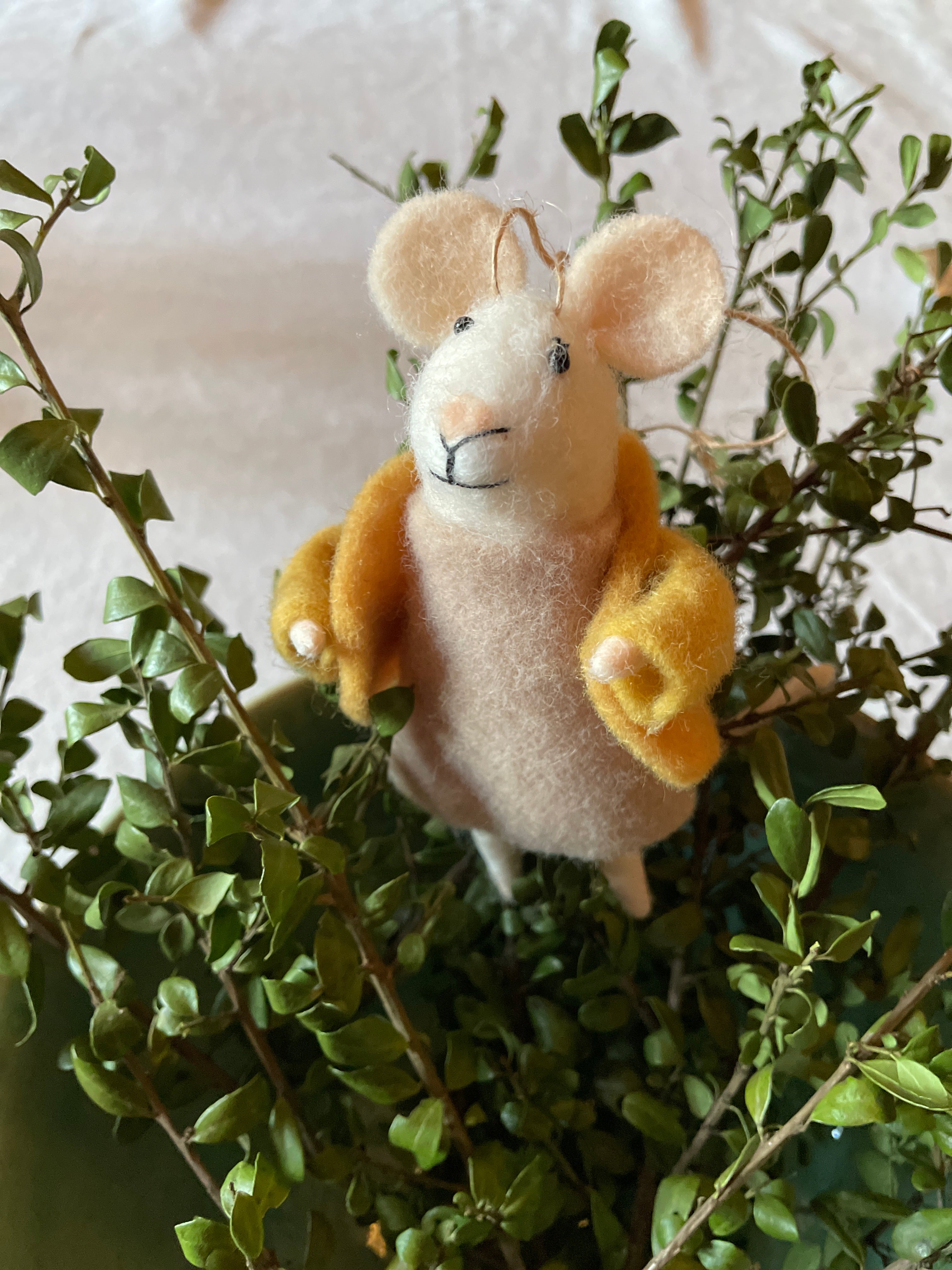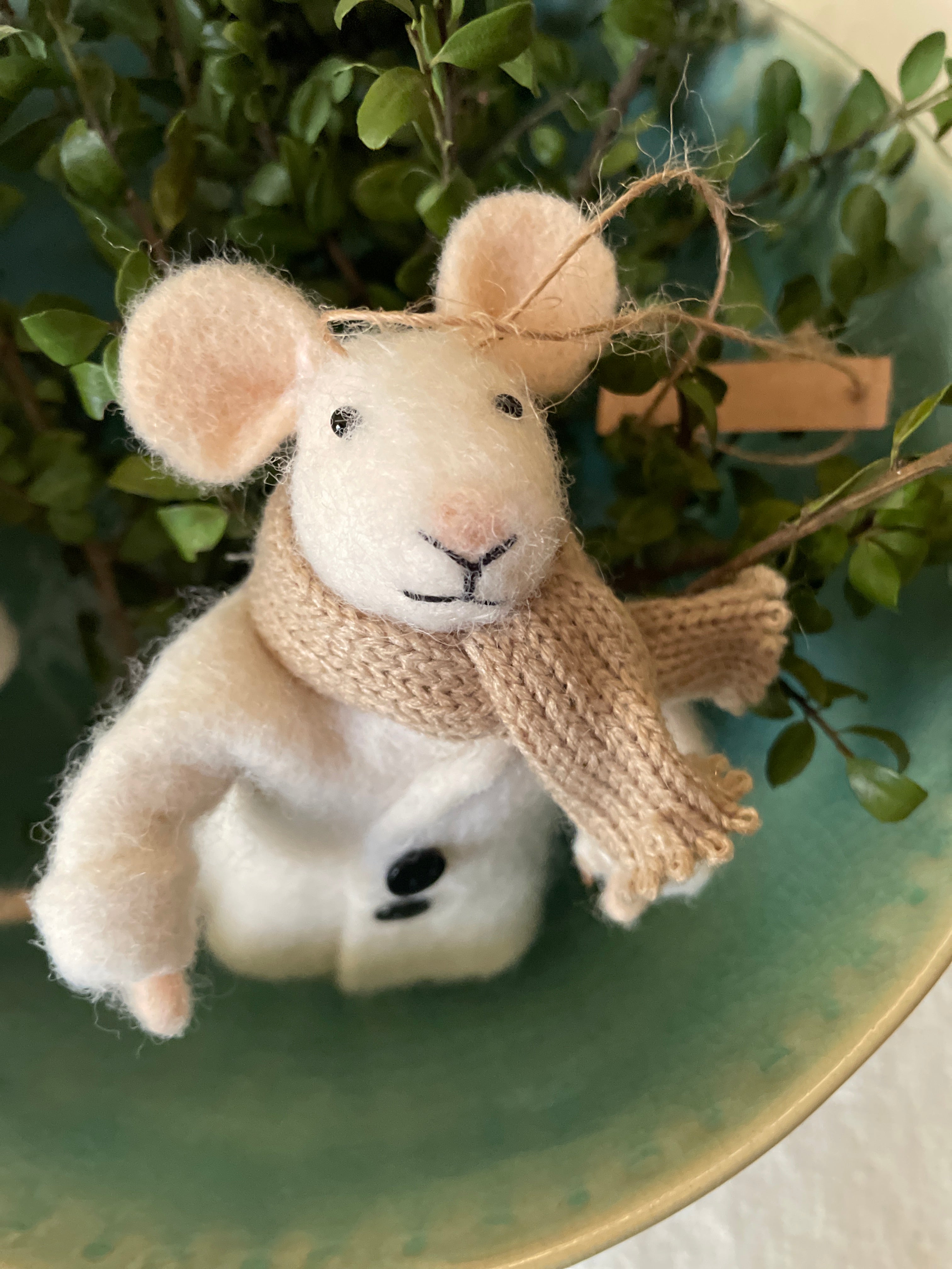 Made of wool. Can be a hanging ornament or sit in decorative centrepiece.