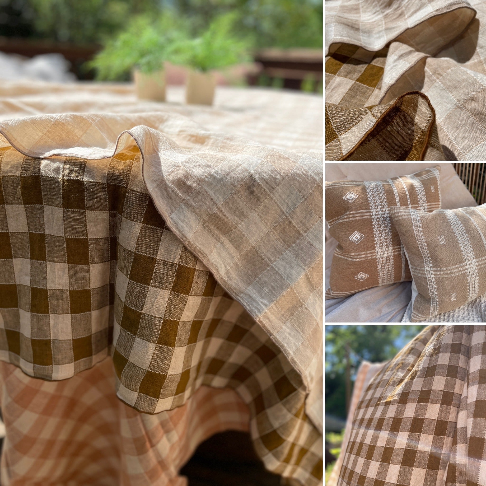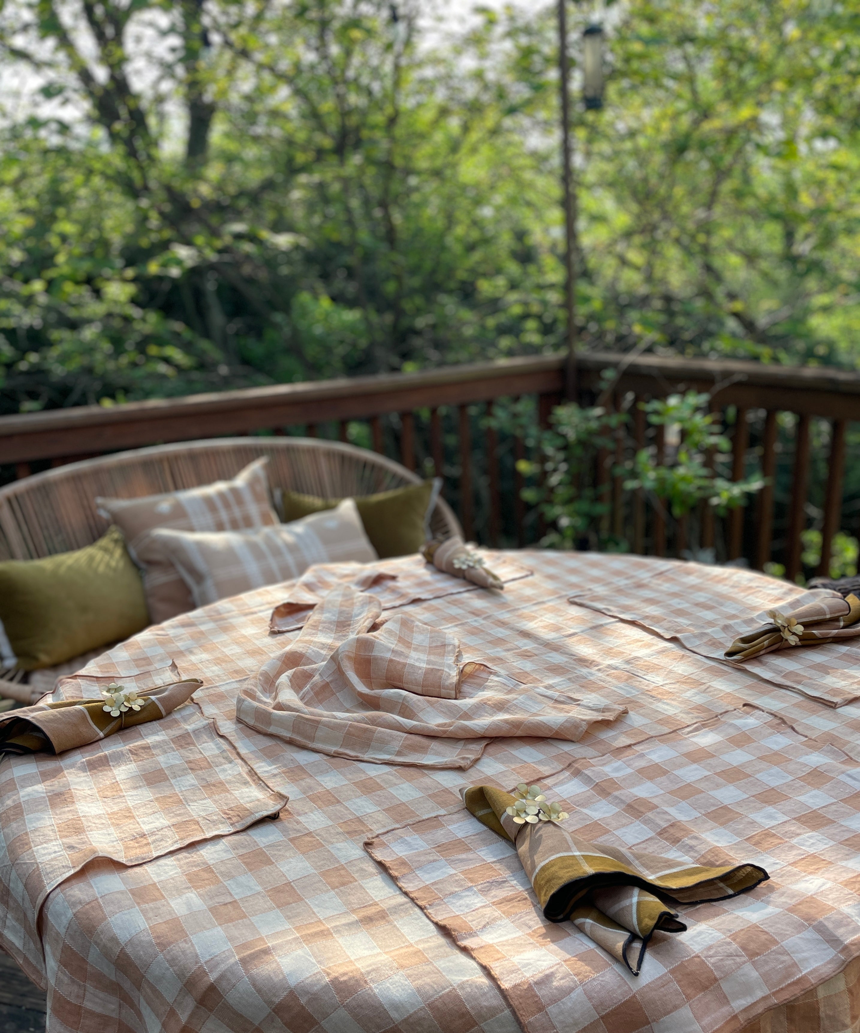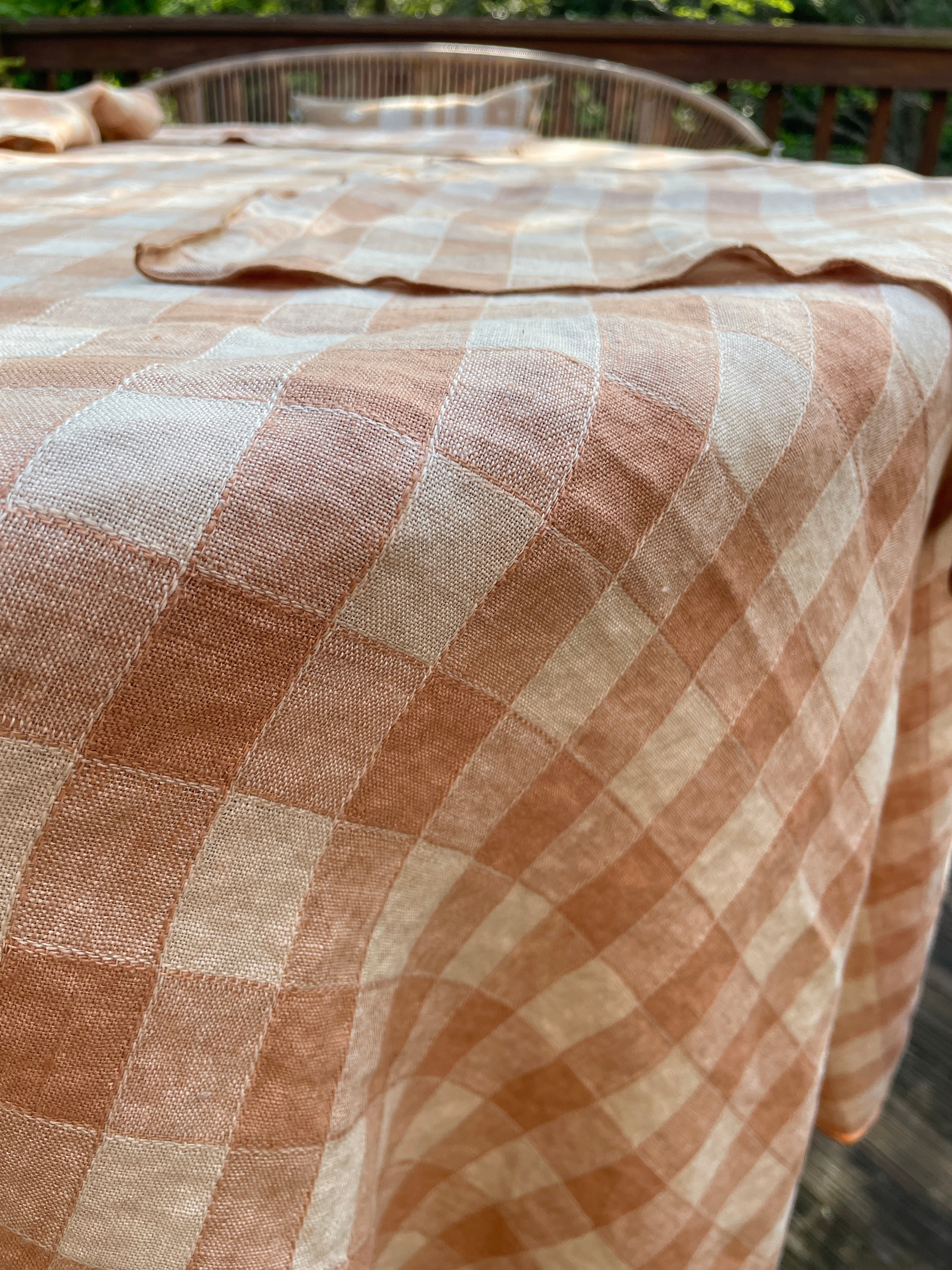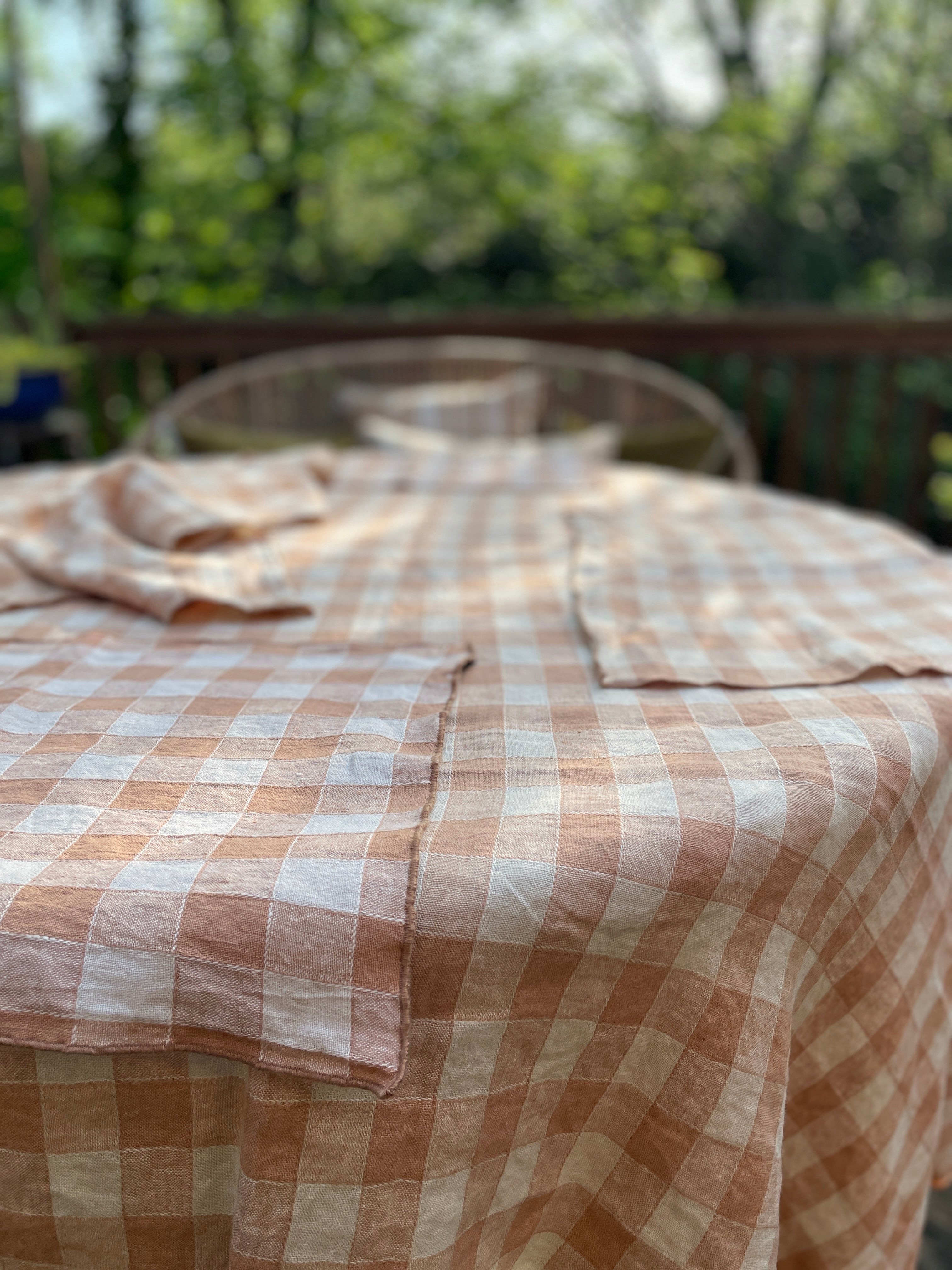 Vintage Inspired Gingham French Linen Tablecloth - Nougat