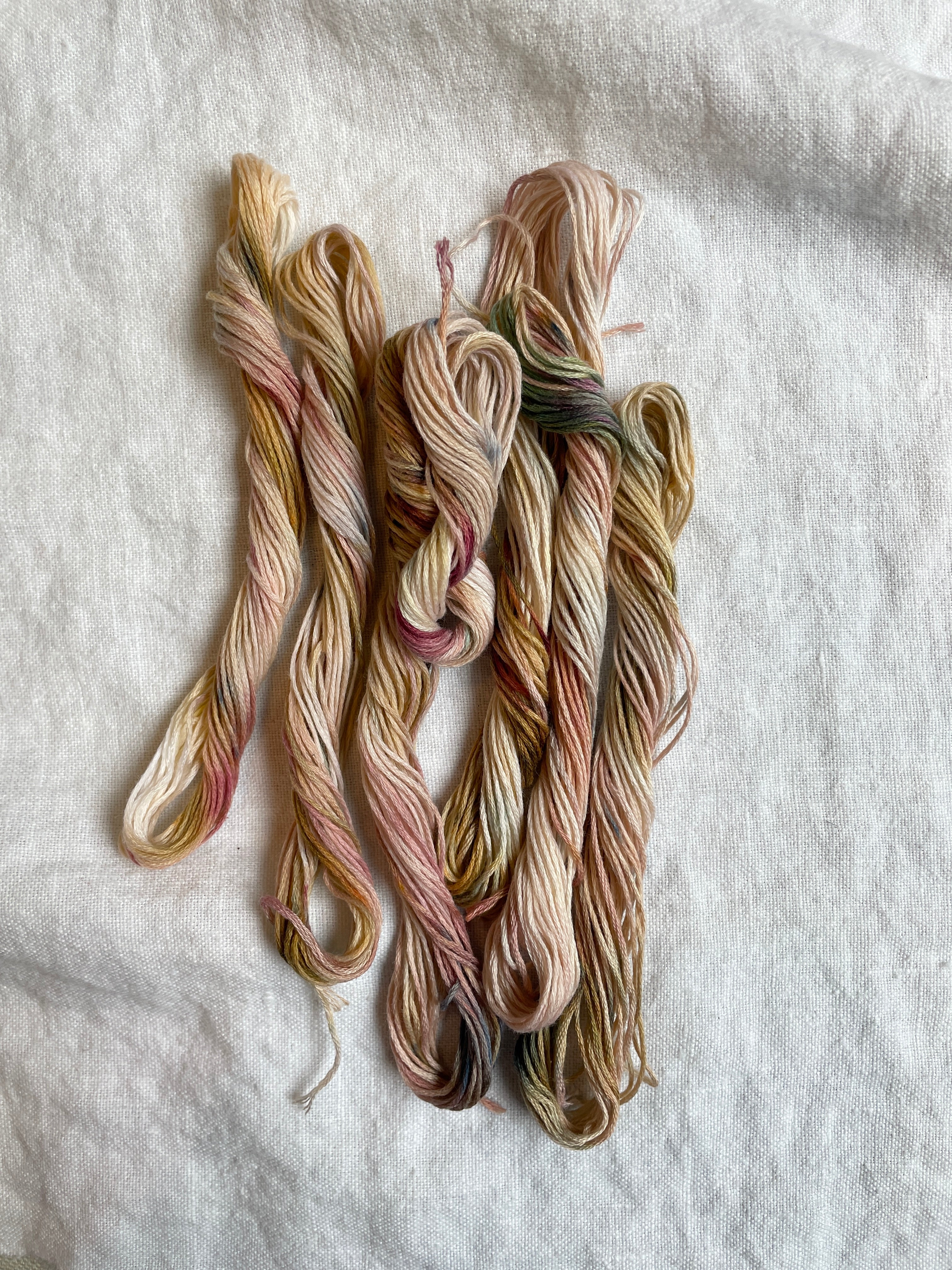 Hand dyed embroidery threads are great for mindful meditative stitching whether you're following a pattern or let your needle and thread wonder across the fabric and create a free style hand stitched piece. Perfect to embroider with on linen or mid weight cotton fabric.