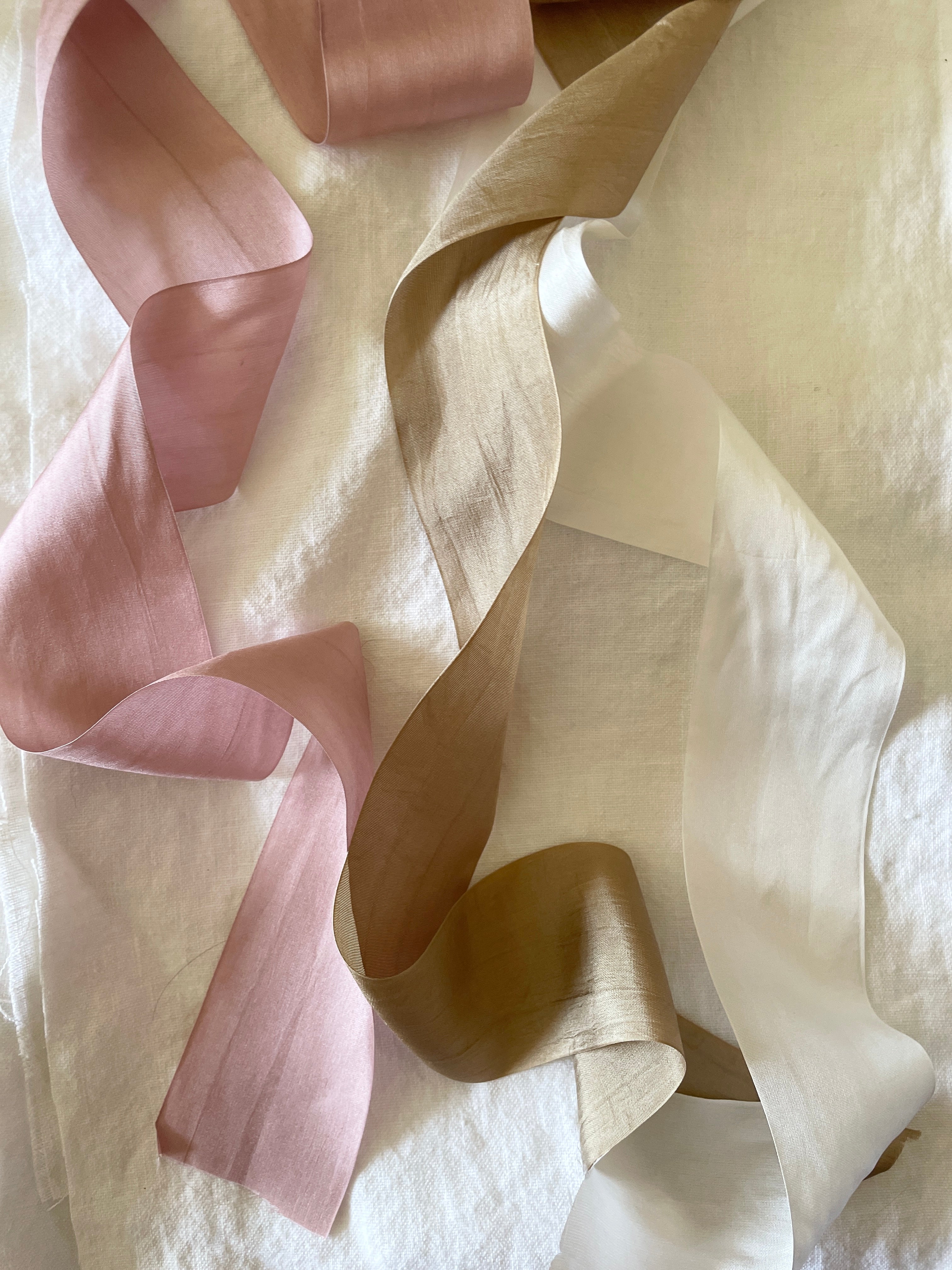 Gorgeous soft and casually elegant silk ribbon is hand dyed and a casually elegant beauty to add to presents or something hand made.