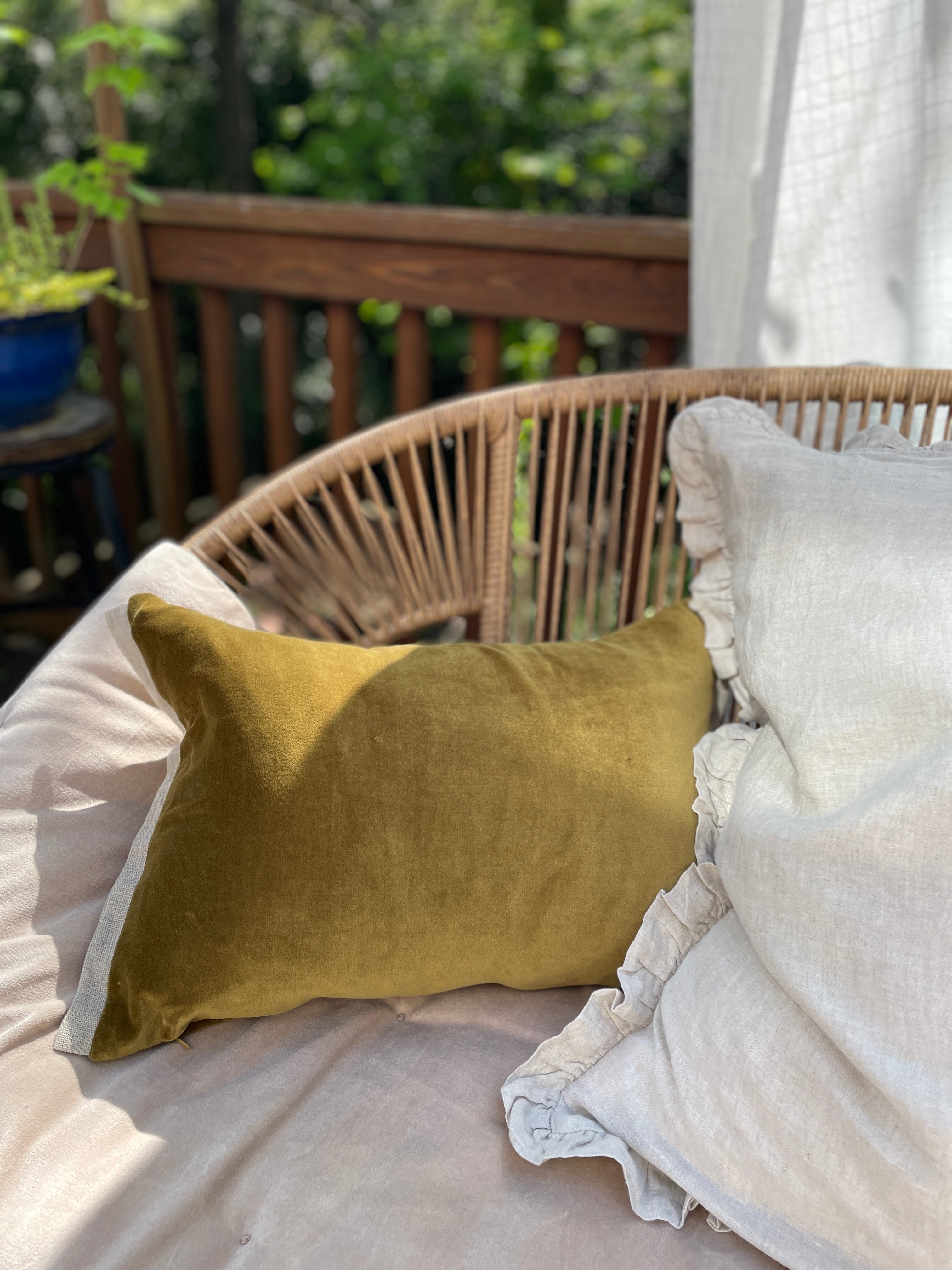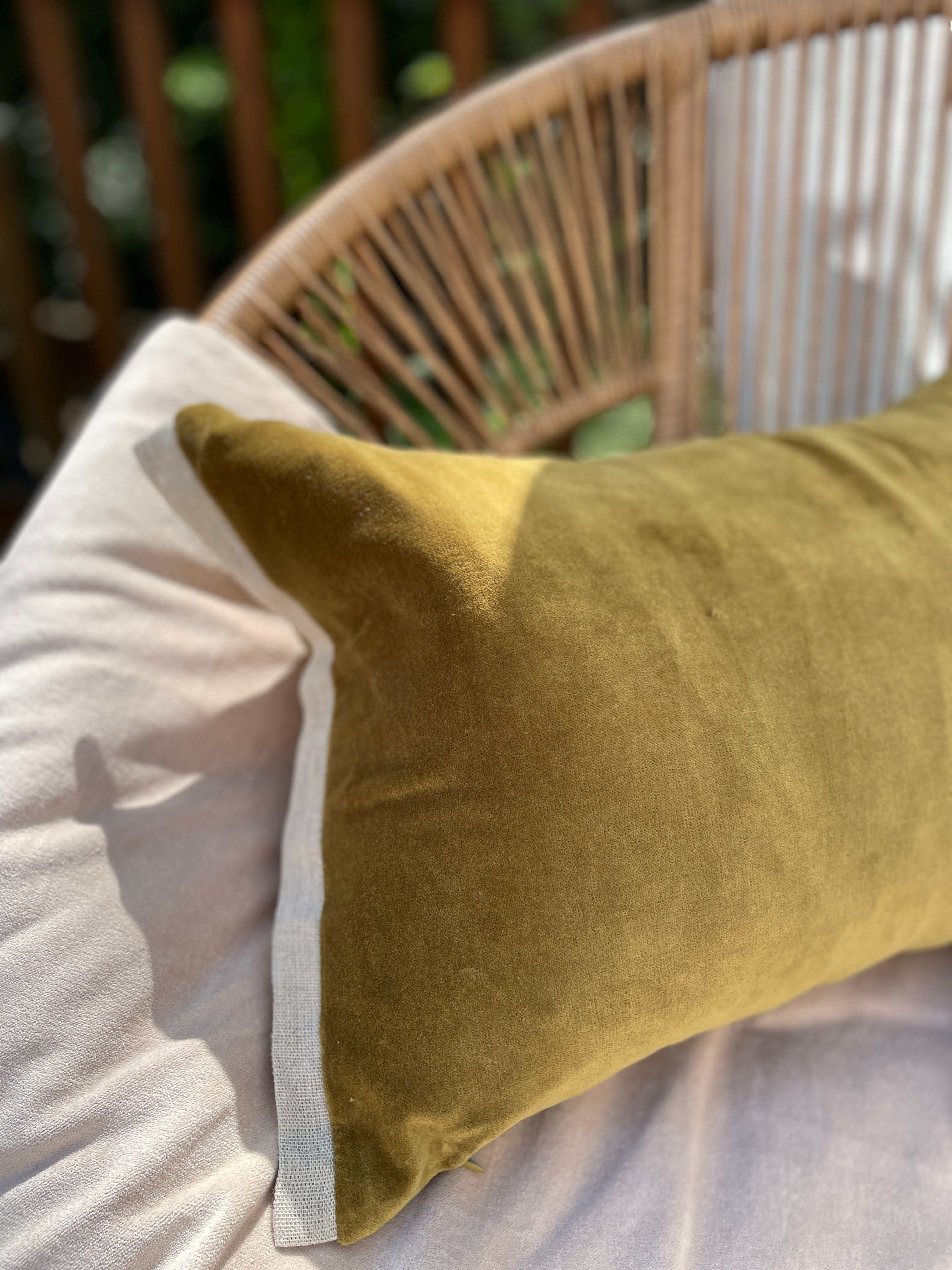 RESERVED - Super Soft Cotton Velvet Pillow Cover with Linen Detail - Chartreuse